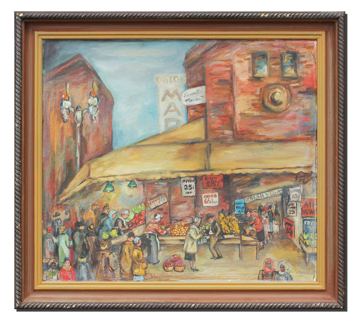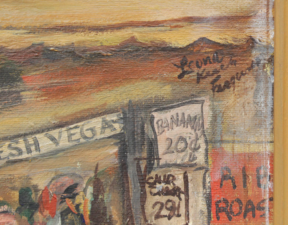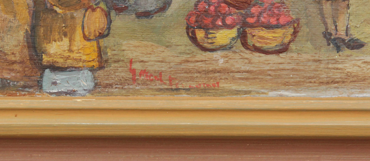 FERGUSON, Leona, (American, 1895-1960): Market Scene, Oil/Canvas, 22'' x 25'', signed twice, encased in gilded and painted frame with wear 26 1/2'' x 29 3/4''.