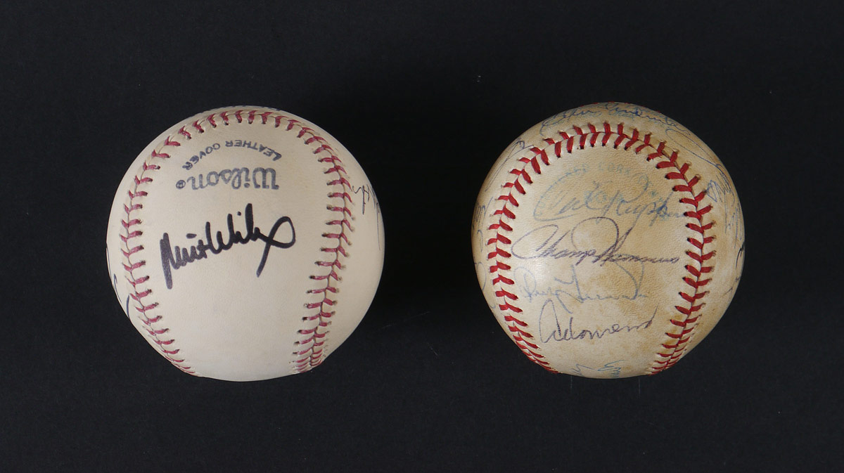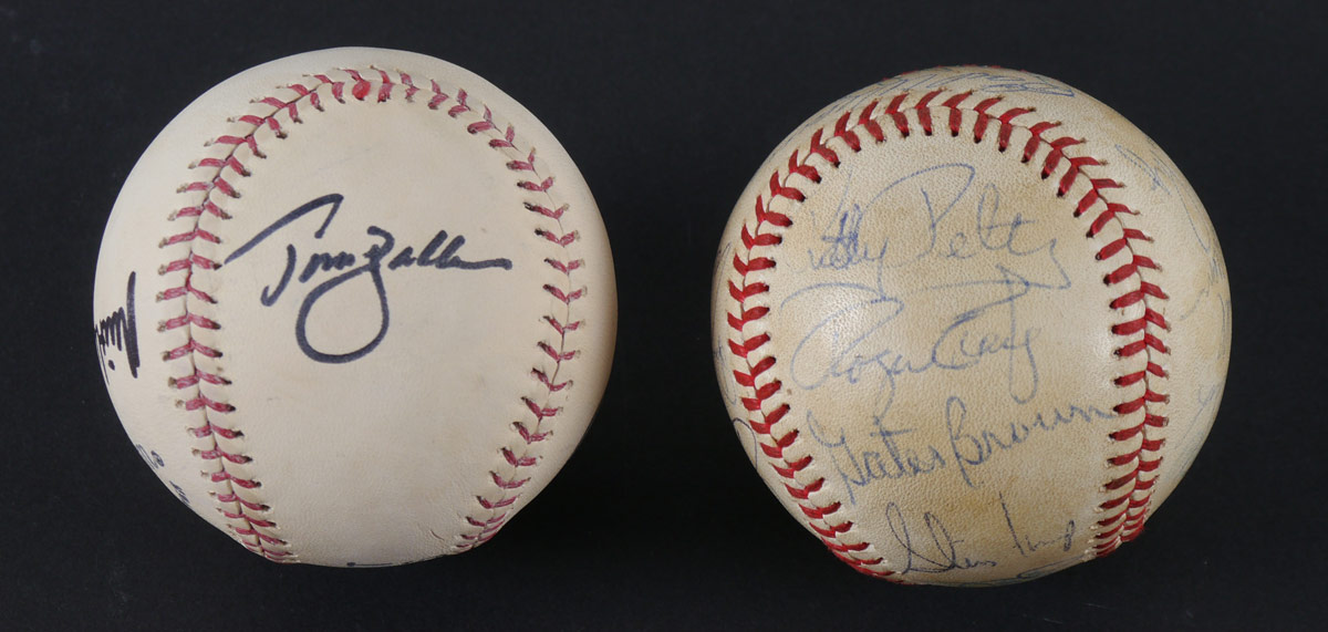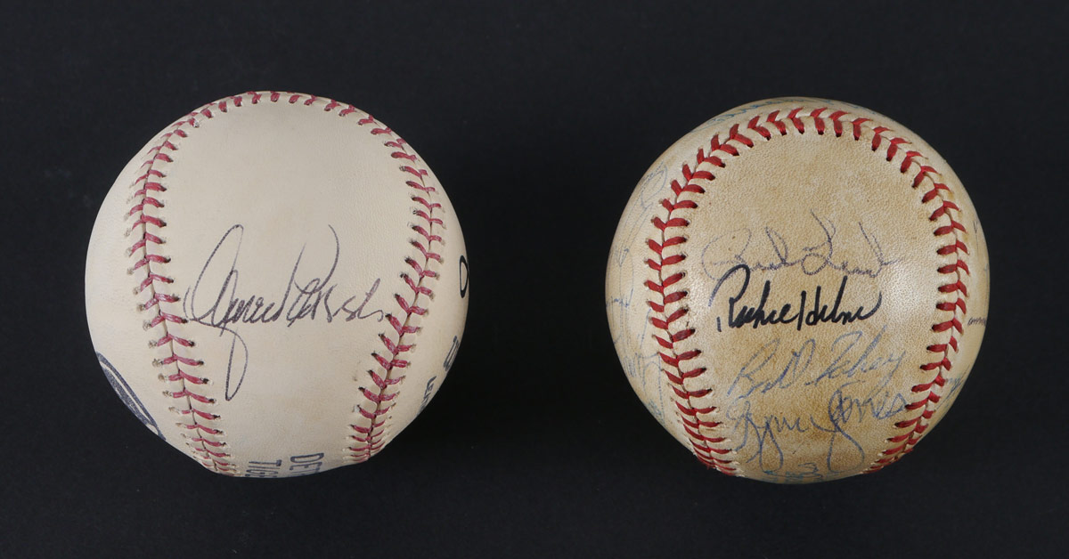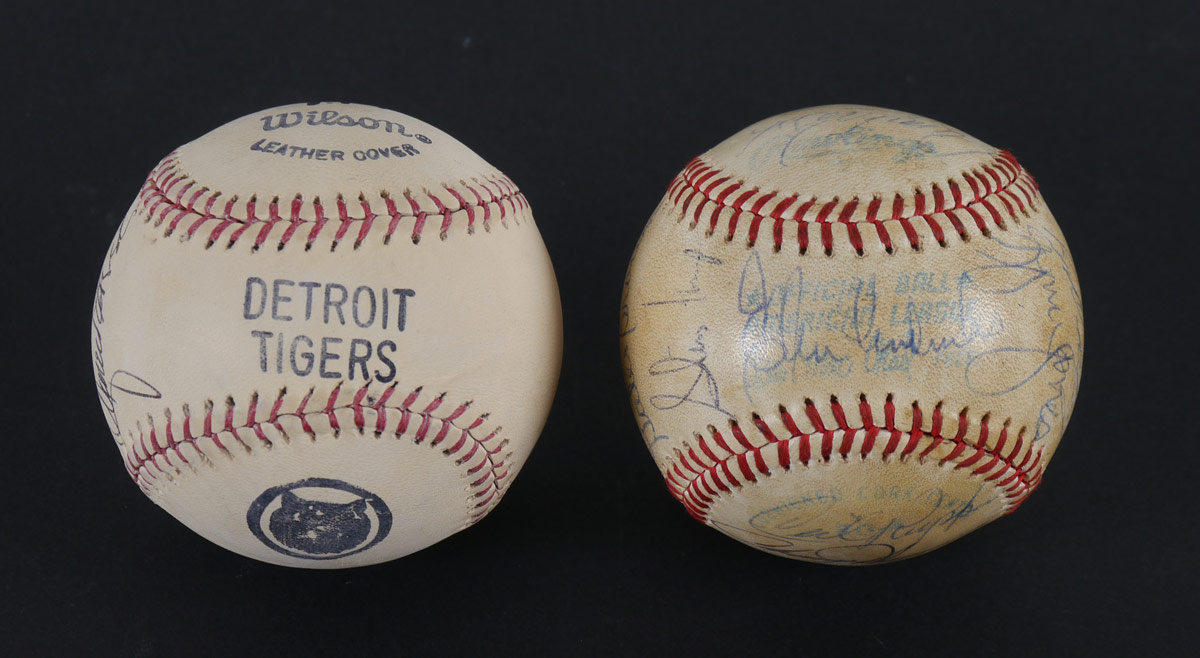 2 MULTI PLAYER SIGNED BASEBALLS: 2 balls to include 1) 1970's Grapefruit League spring training ball signed by various members of various teams, highlights to include Cal Ripken Sr., Champ Summers, Earl Weaver, Gates Brown and 16 others on official American League ball. 2) Detroit Tigers ball with 3 signatures.