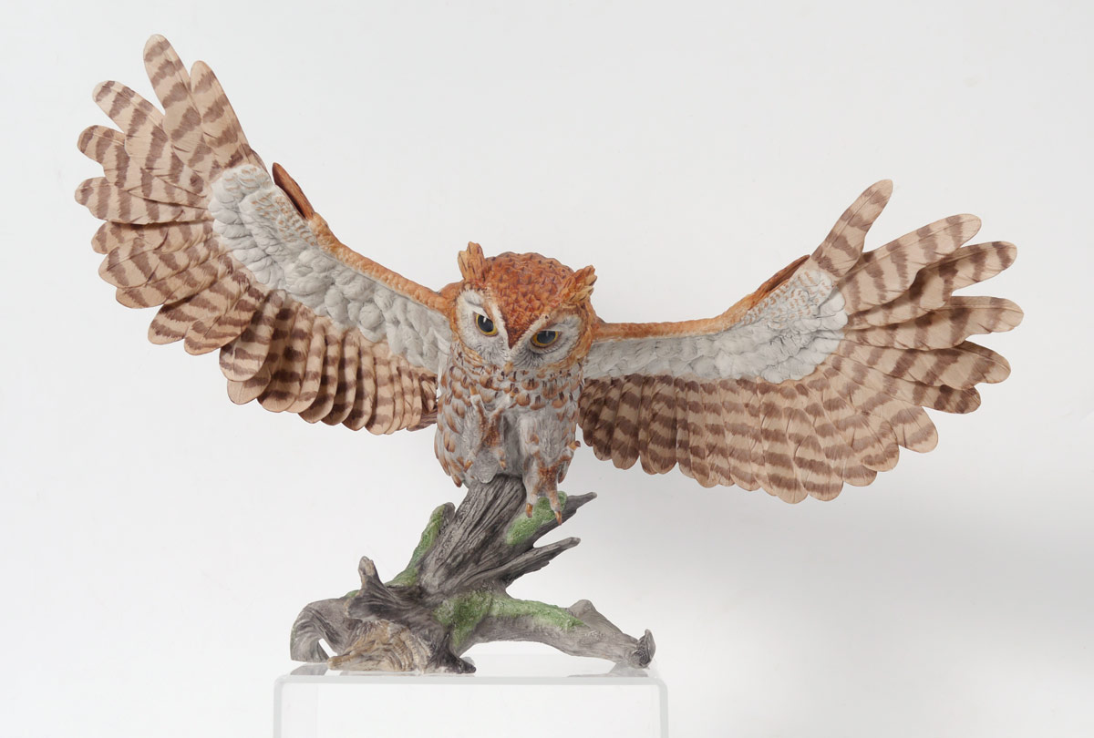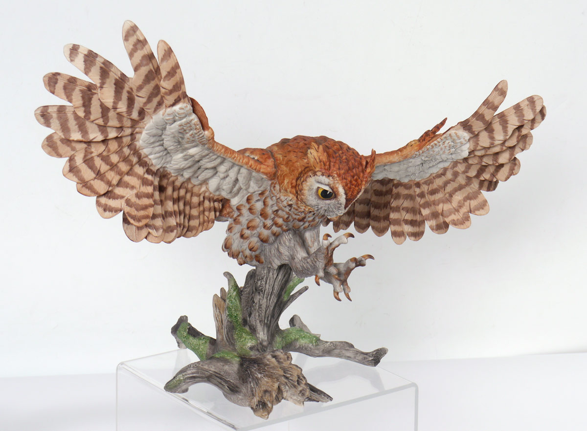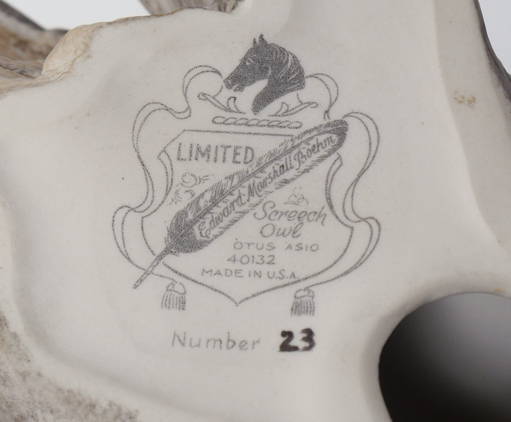 LARGE BOEHM PORCELAIN OWL FIGURE: #40132, Screech Owl, Limited Edition #23, 1980. 14 1/4'' h. x 21 1/2'' x 12''.