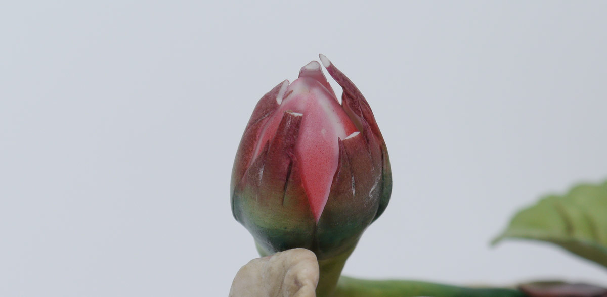 CONDITION: Loss to one unopened flower and a leaf. Please see images.