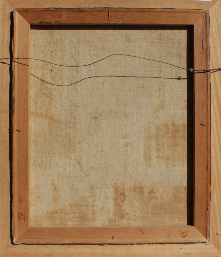 CONDITION: Scattered craquelure throughout with several areas of paint fleck and loss, sold as is.