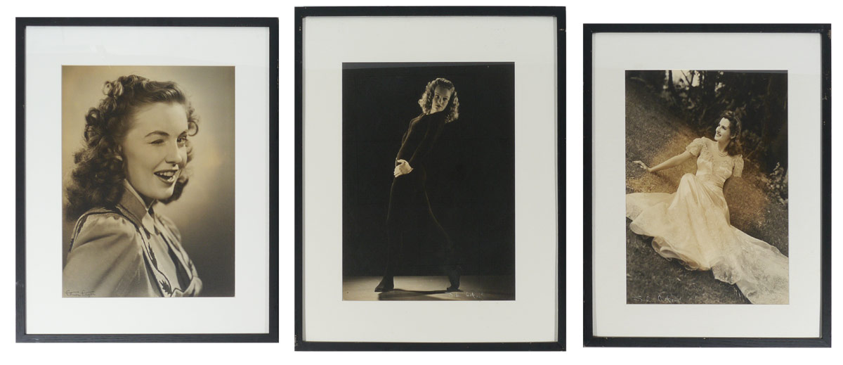 PHOTOGRAPH LOT TO INCLUDE: ELMER FRYER photograph woman in nightgown, ELMER FRYER photograph winking girl, Vintage Nude photograph, ALICE FAYE photograph by SCHUYLER, Woman in catsuit photograph by SCHUYLER, & BRENDA MARSHALL wedding dress photograph by SCHUYLER.