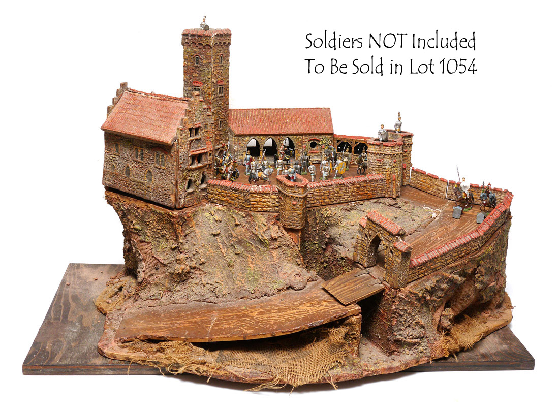 ELASTOLIN LARGE CASTLE: Composite construction, one of the larger castles produced by Elastolin. Circa 1930's, overall measures 21 1/2 x 36'' x 26''.