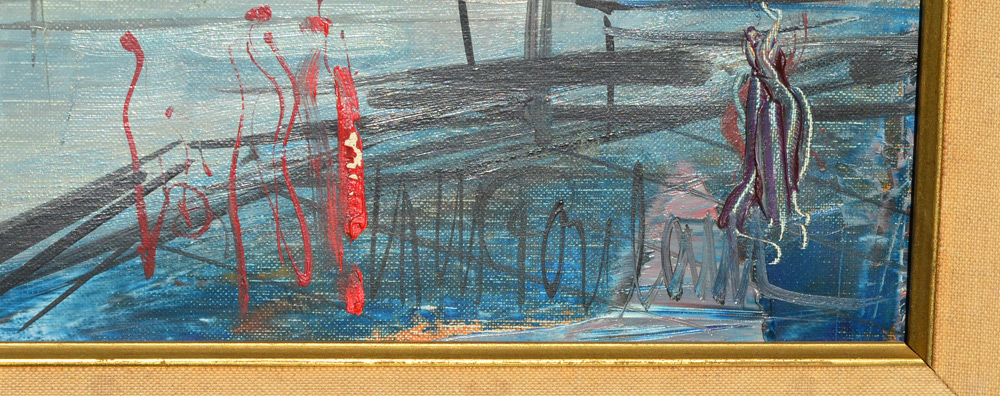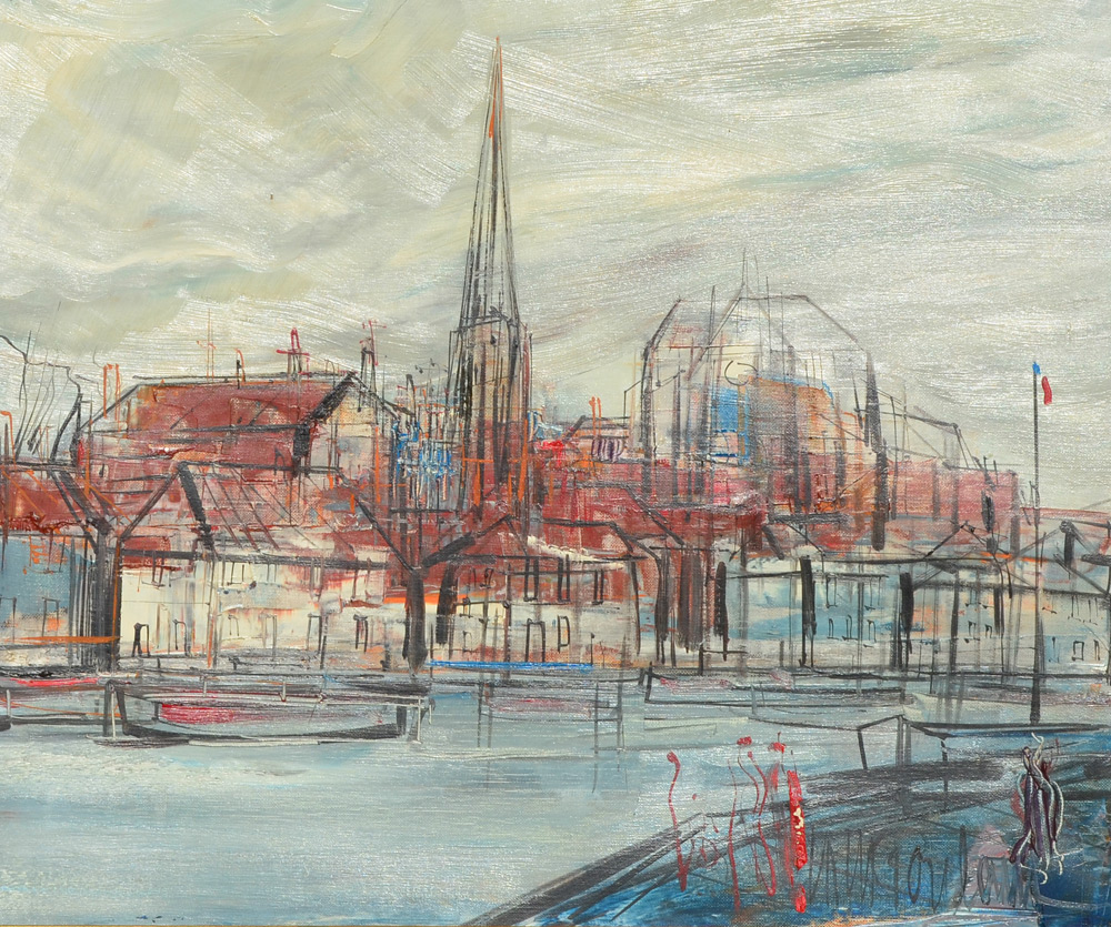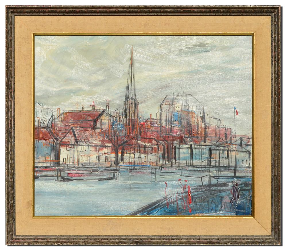 POULAIN, Michel, (French, 1906-1991): ''The Petite Port'', Paris from the Seine, Oil/Canvas, 18'' x 21 1/2'', signed lower right, titled verso, encased in a carved wood frame with minor wear 23'' x 26 1/2''.