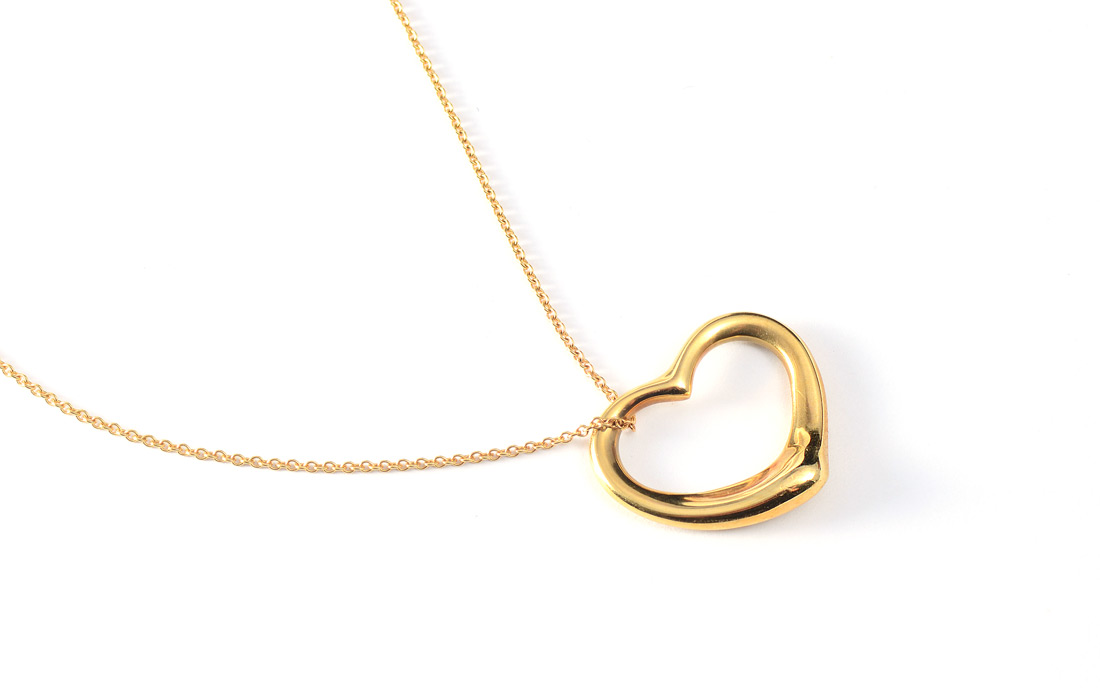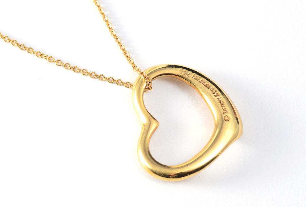 ELSA PERETTI FOR TIFFANY & CO HEART NECKLACE: 18K yellow gold Elsa Peretti heart pendant with 18K link necklace. Pendant and chain are Signed: Tiffany & Co. Weight: 6.3 grams.