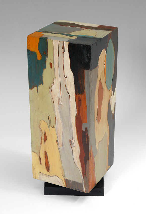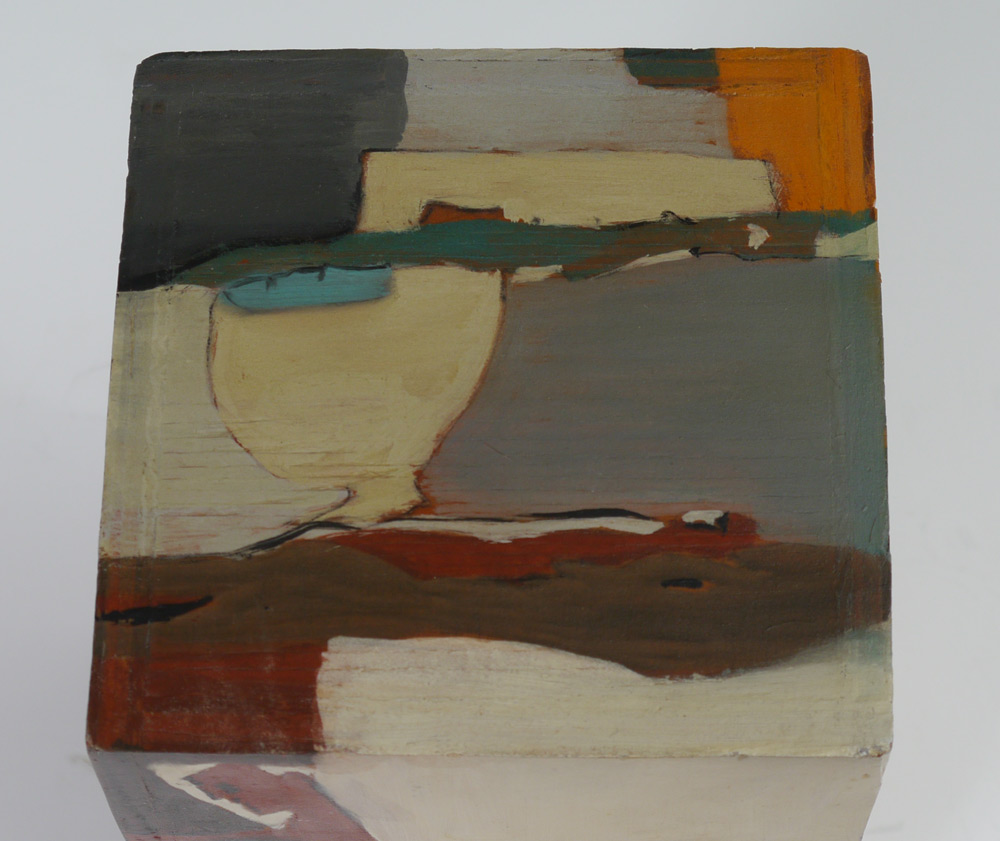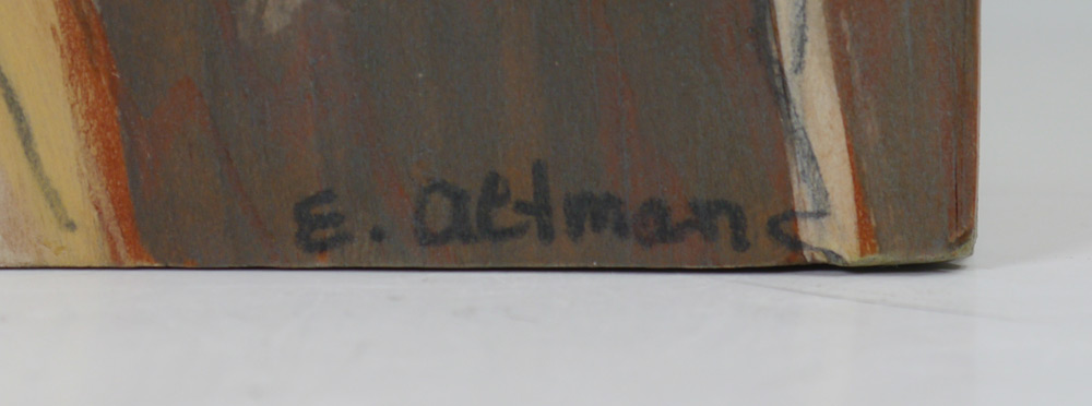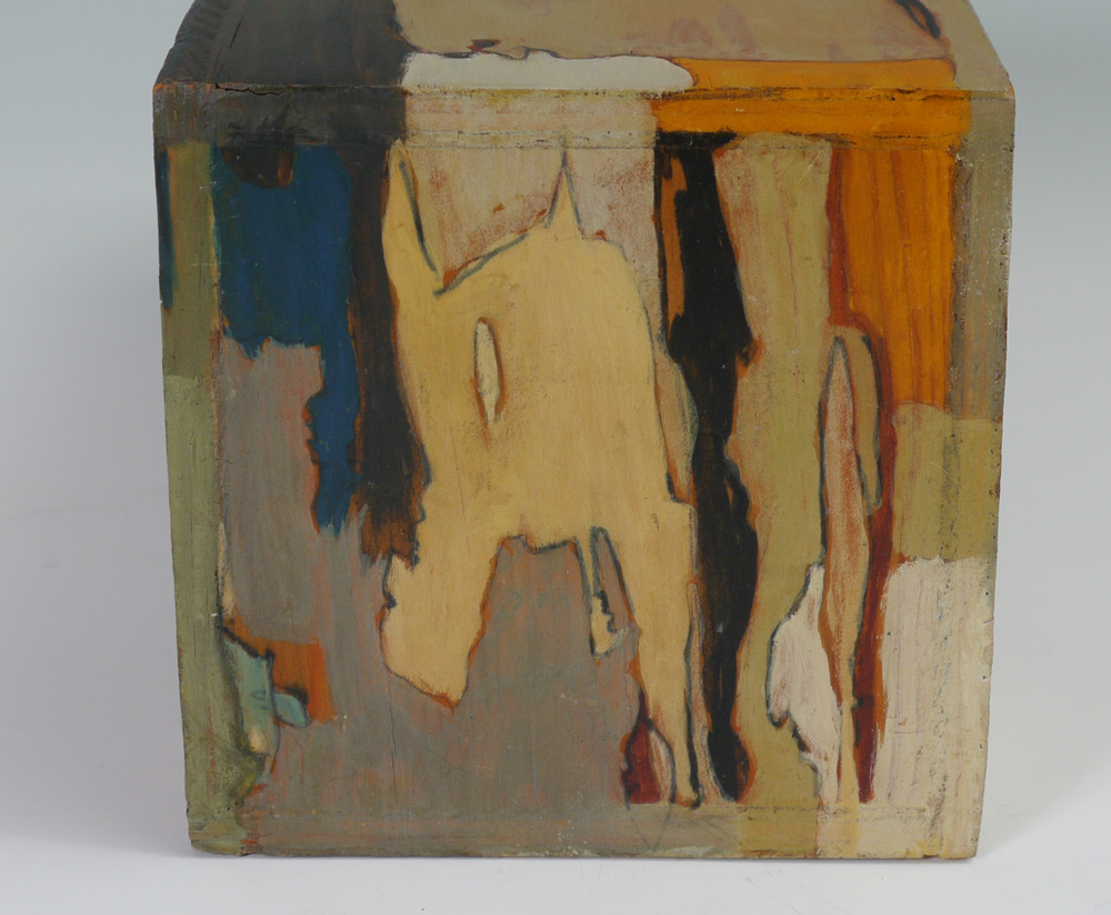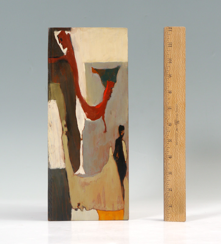 ALTMAN, Edith, (American, 1931- ): Painted Wood Six Sided Polygon with Abstract Figures, signed E. Altman.