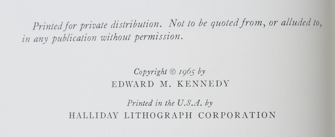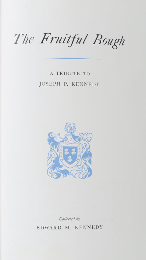KENNEDY, Edward, (1932-2009): ''The Fruitful Bough, A Tribute to Joseph P. Kennedy'', 1965, printed for private distribution, Halliday Lithograph Corporation. Cloth covers with embossed gilt. 9 1/4'' x 6 1/2''.