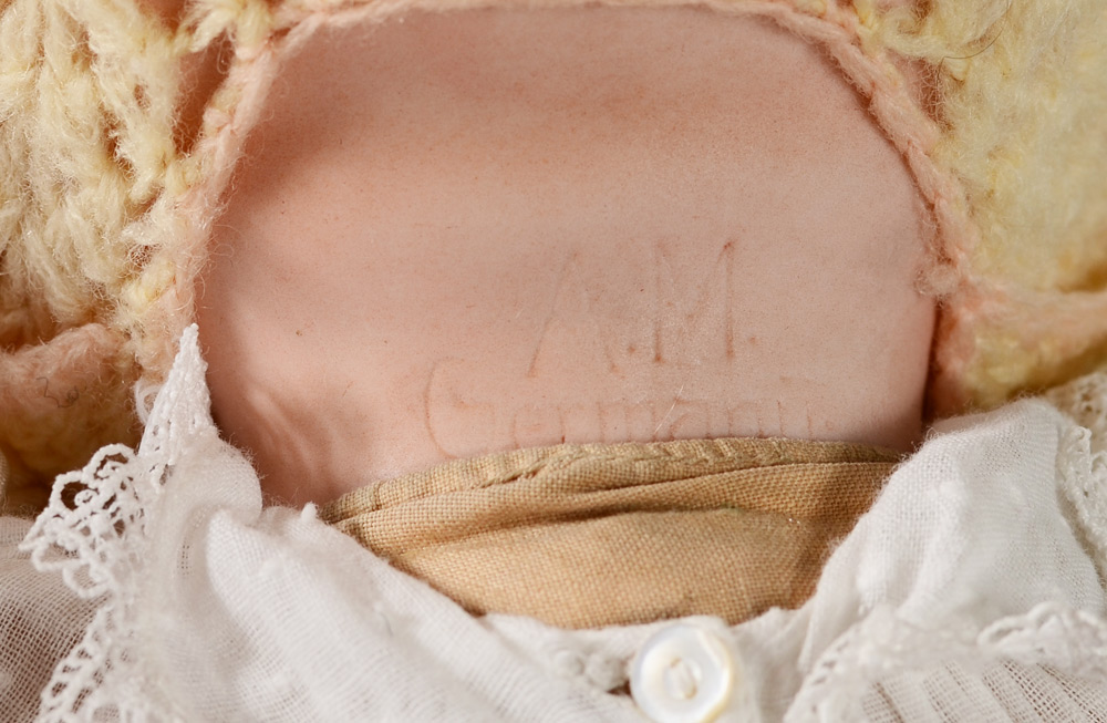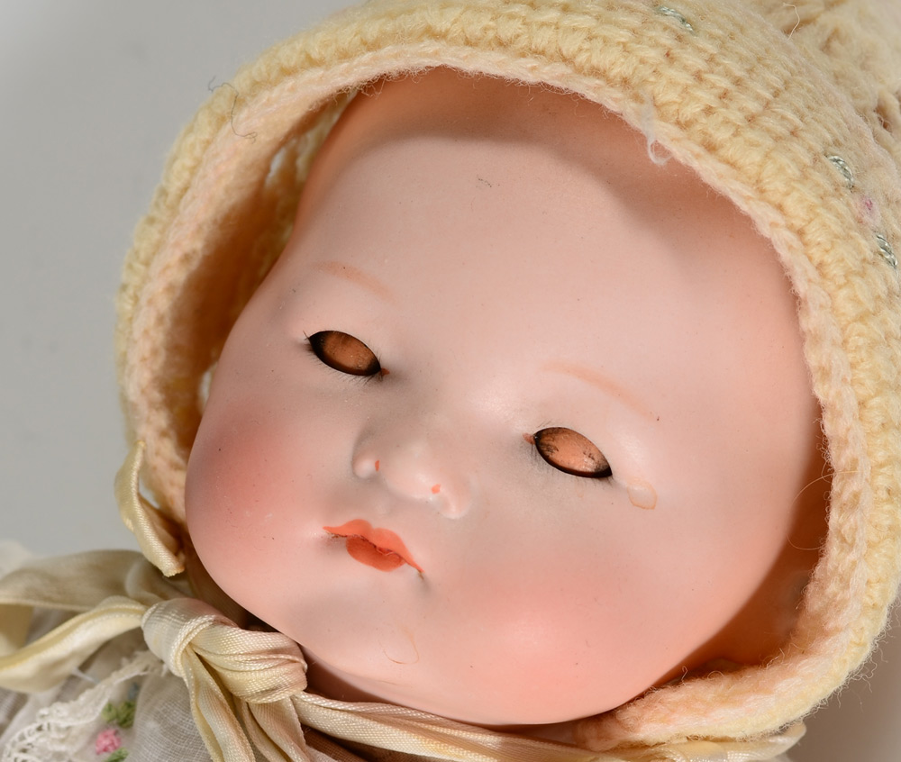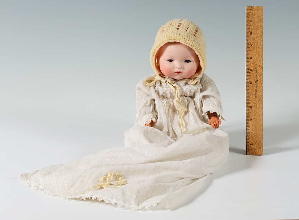 15'' ARMAND MARSEILLE DREAM BABY DOLL: German bisque head baby doll, her head marked AM Germany, blue sleepy eyes, cloth body and celluloid hands.