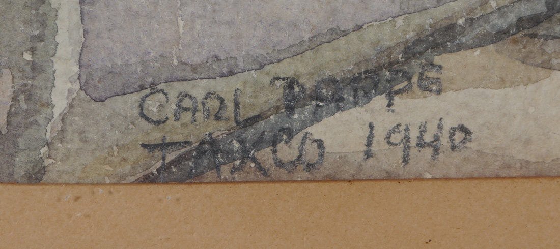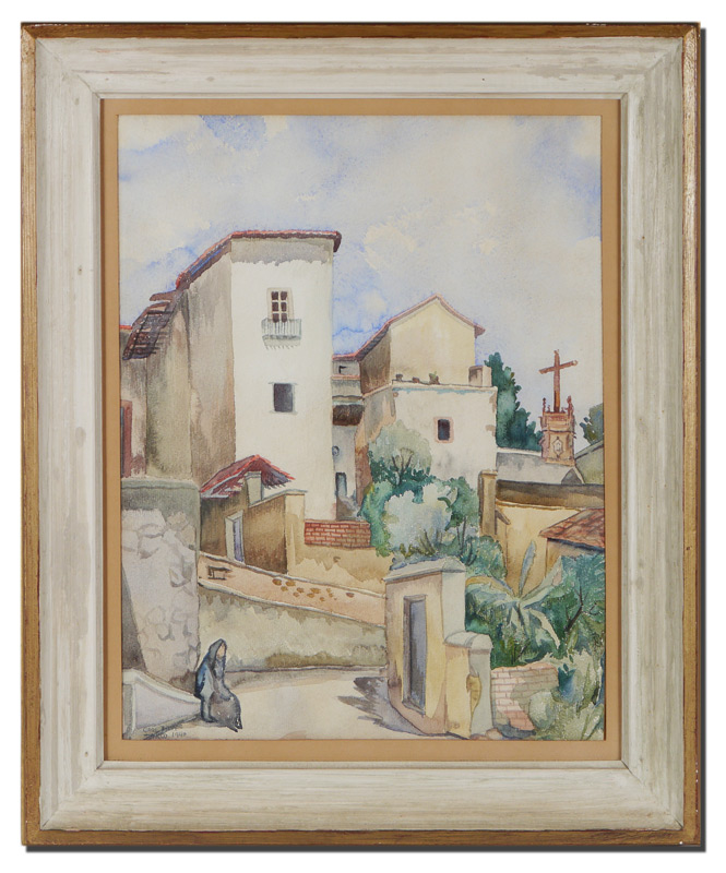 PAPPE, Carl Lewis, (Mexican-American, 1900-1998): Taxco Village Painting, Watercolor, Sight size 24'' x 18 1/2'', signed lower right, titled and dated 1940, custom painted wood frame 31 1/2'' x 26'' x 2''.