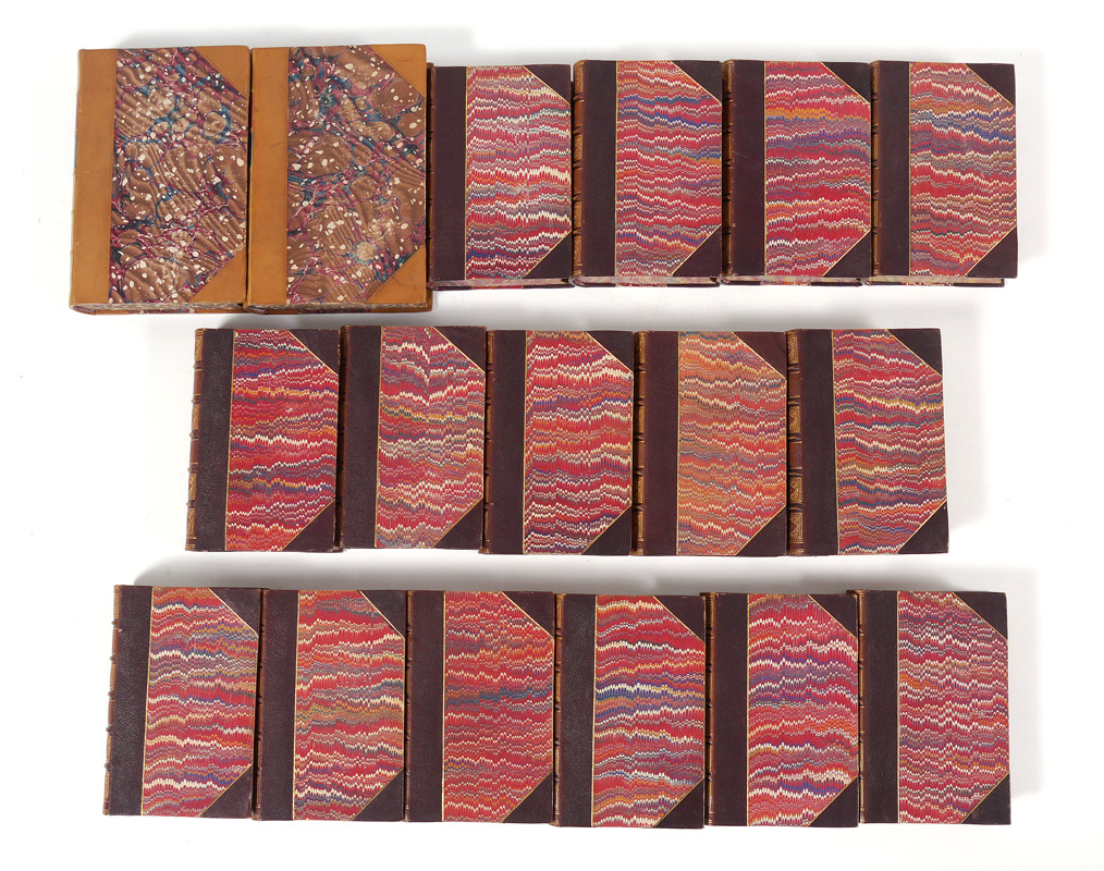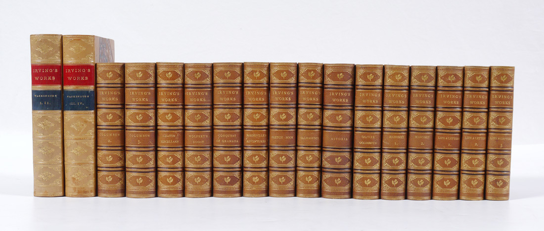 IRVING, Washington: 17 total volumes ''Irvings Works'' in 2 sets to include 1) Peoples Edition, 3/4 morocco. 1872, Lippincott & Co., Philadelphia. 2) 2 of 4 volumes, 3/4 calf, marbled boards & page ends. Thomas Y. Crowell & Co. New York