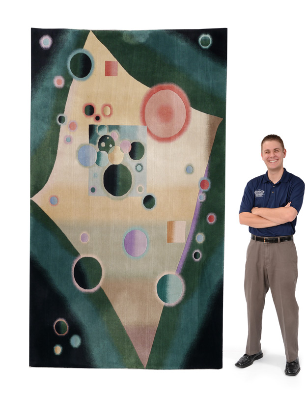 EMERALD 100% WOOL CONTEMPORARY RUG 5'9'' x 8'9'': Design inspiration for the Guggenheim Masters Collection was drawn from the work of Vasily Kandinsky, one of the foremost figures in the stylistic development of 20th Century painting. In this unique collection, distinctive interpretations of these preeminent modern masterpieces are recreated in the unsurpassed opulence of a hand-knotted 100% wool construction. Each carpet is a work of art in itself, certain to be the centerpiece of any room.