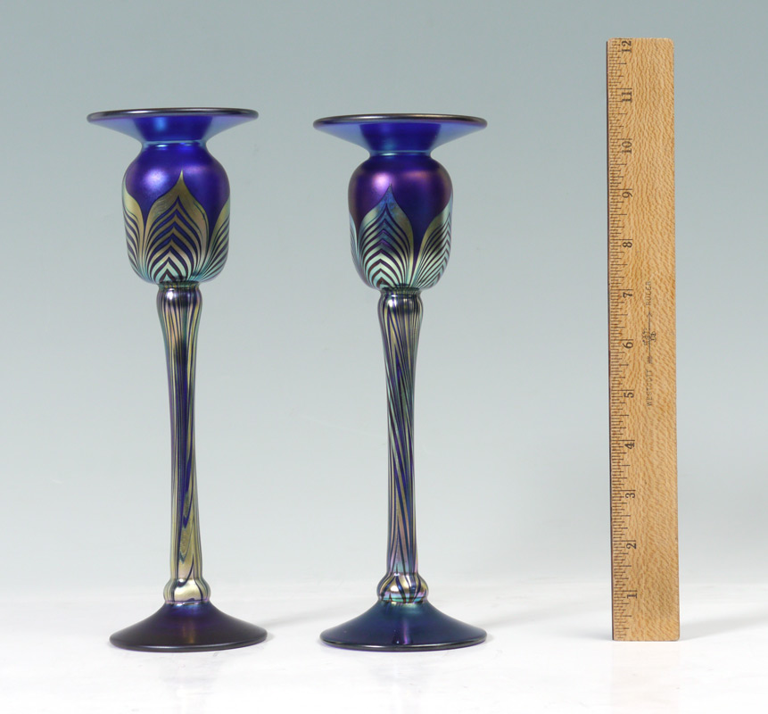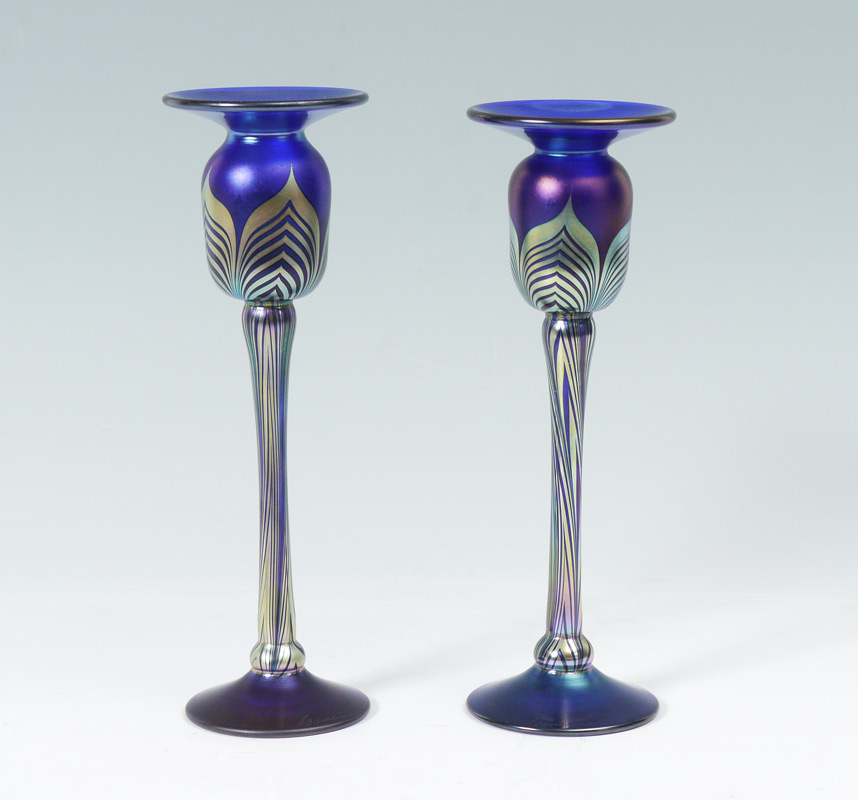 CORREIA ART GLASS: Candlesticks, 10 1/2''