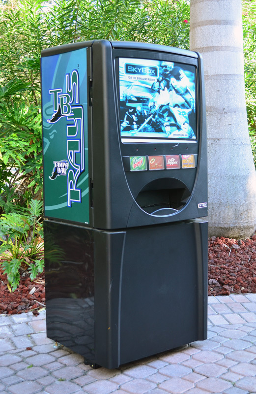 SKYBOX BY MAYTAG SODA MACHINE: With Tampa Bay Rays inserts. 59 1/2'' h. x 24 1/2'' x 21 3/4''.