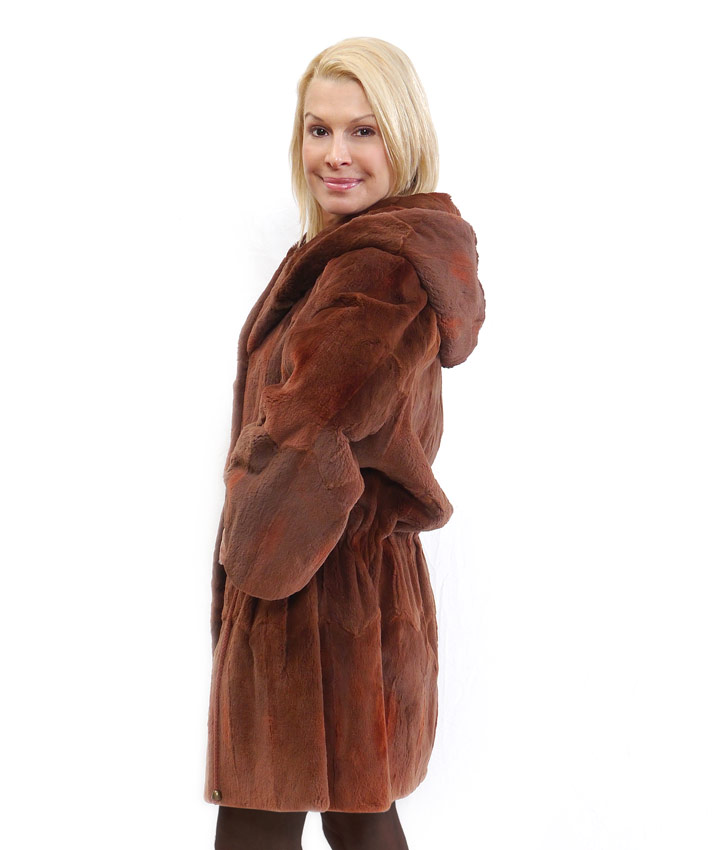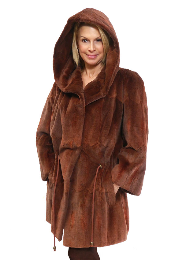AUSTRIAN SHEARED BEAVER HOODED FUR COAT: Sporty car length coat with generous hood, draw string belt and pockets. Franz Peterman Wien label. Measures approx. 36'' collar to hem, 24'' outer sleeve, and 18'' shoulder to shoulder.