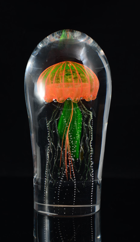 CZECH JELLYFISH ART GLASS PAPERWEIGHT: In the manner of Rick Satave, but most likely Czech produced, 8 3/4'' x 4''.