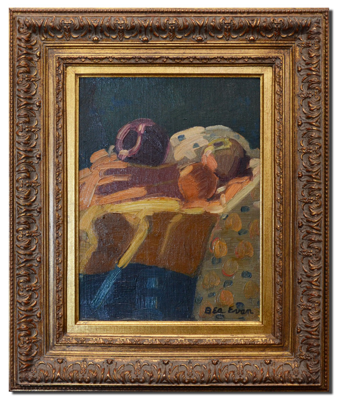EVAN, Bea, (American, 20th Century): Still Life with Fruit, Oil/Canvasboard, 15 3/4'' x 12'', signed lower right, encased in contemporary gilded frame 24'' x 20 1/2''.