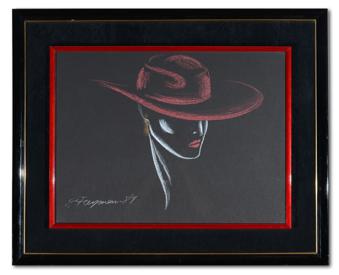 FREYMAN, Erik, (American, 1932- ): Elegant Female Profile Portrait, Pastel, Sight size 18 3/4'' x 25 1/4'', signed lower left, dated '89, encased in a black lacquer frame with minor frame 28 1/2'' x 34 1/2''.