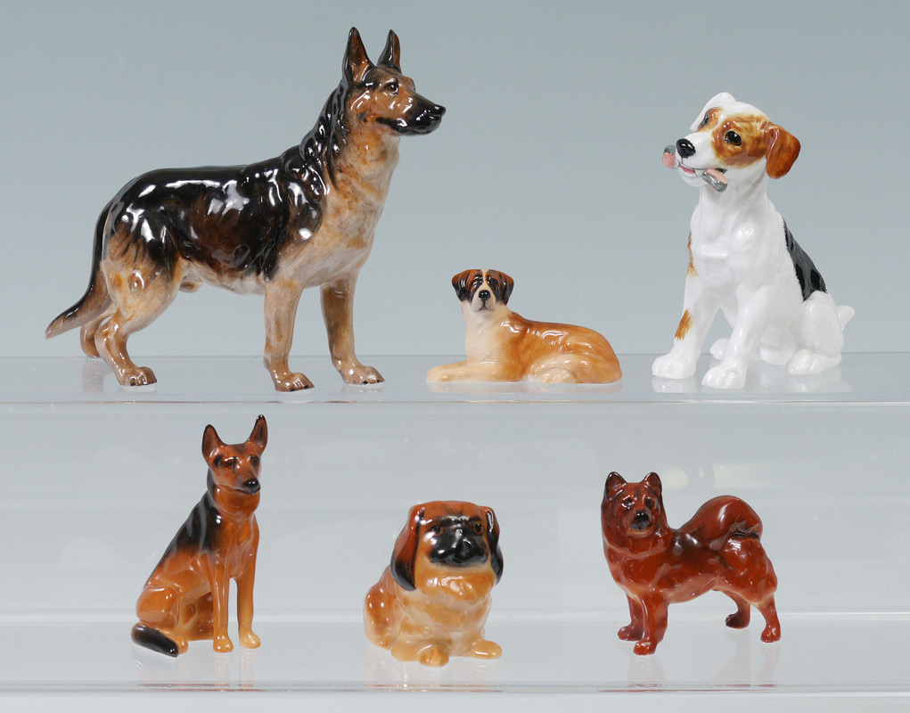 CONDITION: Shiba Inu, K15, repair to leg; German Shepard, 1117, minor crazing to underbelly. All other dogs are in good condition, Bid with confidence.
