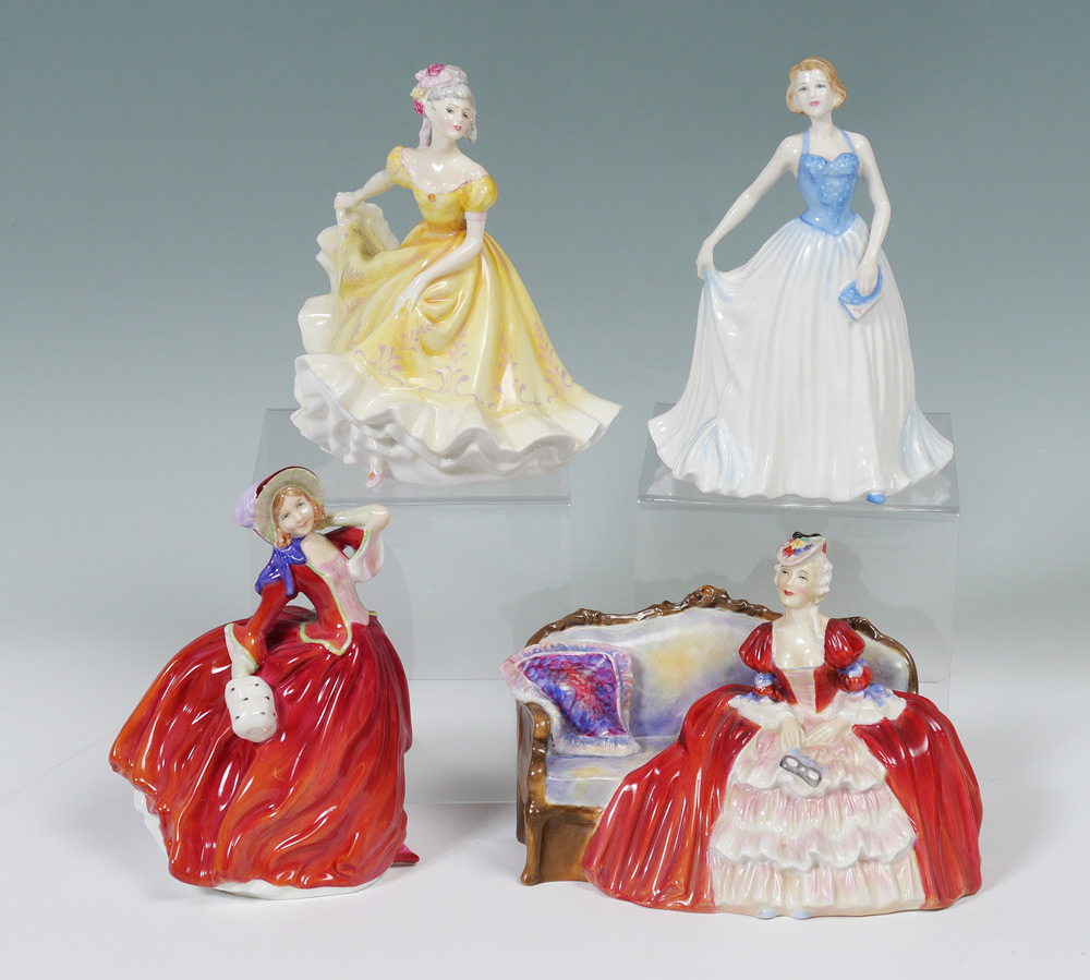 LOT OF 4 ROYAL DOULTON LADIES: 1) Belle of the Ball HN 1994; 2) Autumn Breezes HN1934; 3) New Dawn HN4314; 4) Ninette HN 2379.