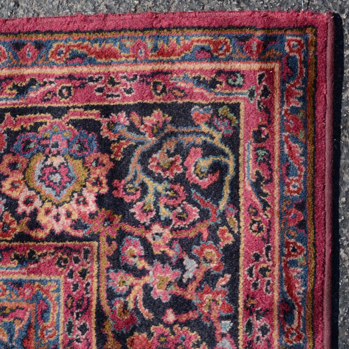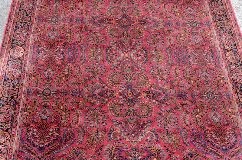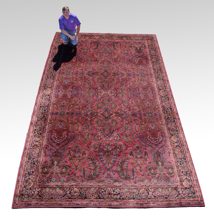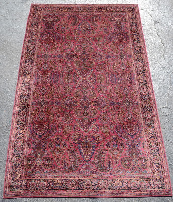 SEMI-ANTIQUE PERSIAN DESIGN MACHINE WOVEN WOOL KARASTAN RUG, 10' x 16' 2'': Although this is a machine woven rug, it was made with a beautiful color palette in a Persian Sarouk pattern. These rugs wear very well while looking very good. Condition is good.