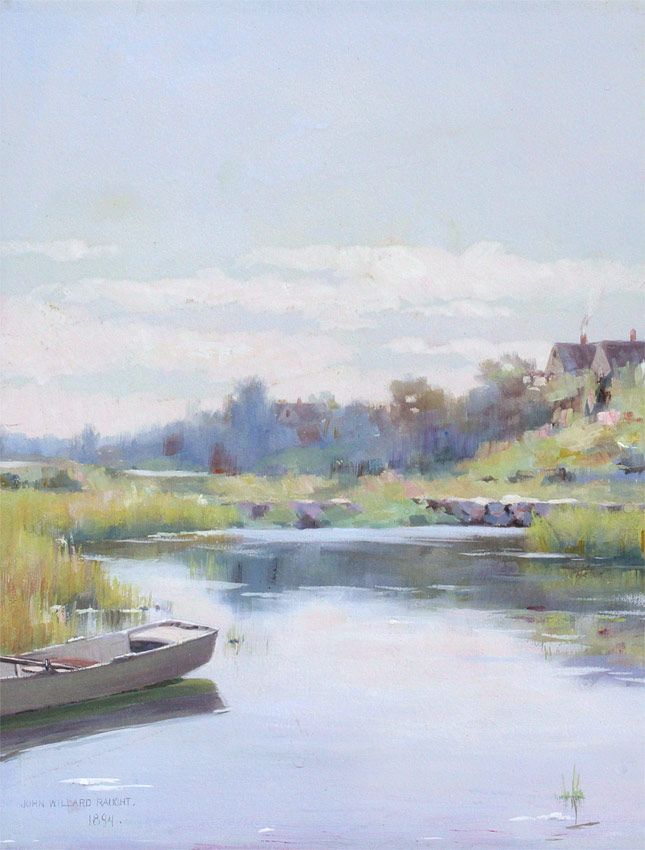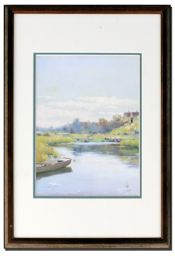 RAUGHT, John Willard, (American, 1857-1931): ''Peaceful Stream'', Gouache, Sight size 12 1/4'' x 9 1/2'', signed lower left, dated 1894, framed 21 1/2'' x 16''.