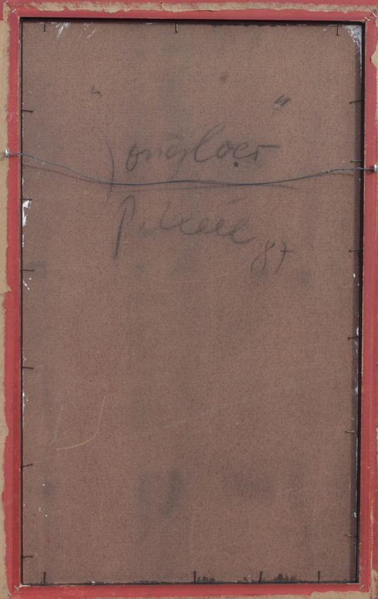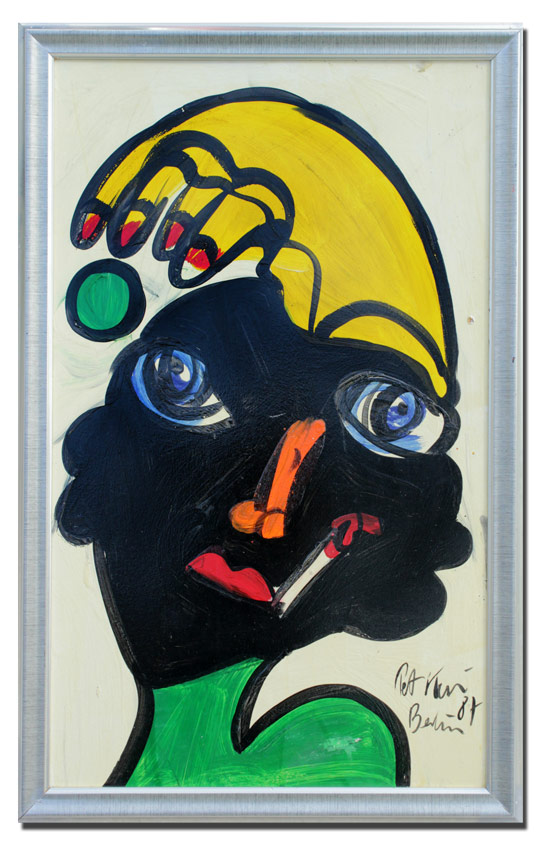 KEIL, Peter, (German, 1942- ): ''Jester'', Oil/Masonite, 39 1/2'' x 24'', signed lower right, dated '87, illegibly signed verso, encased in silver gilt frame with wear, 44'' x 27 1/2''.