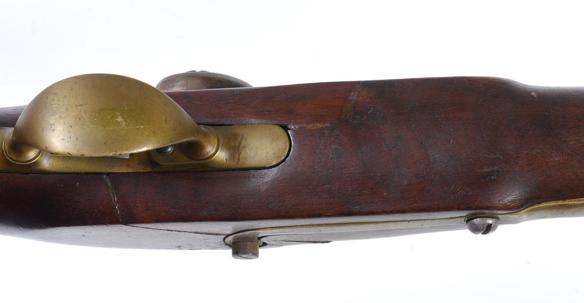 CONDITION: Repair to stock under lockplate, typical chips and nicks to stock. Uneven patina to barrel.