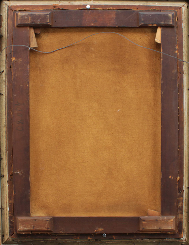 CONDITION: Needs cleaning, minor craquelure, stretcher bar wear, several minor punctures.