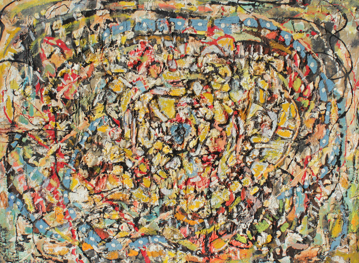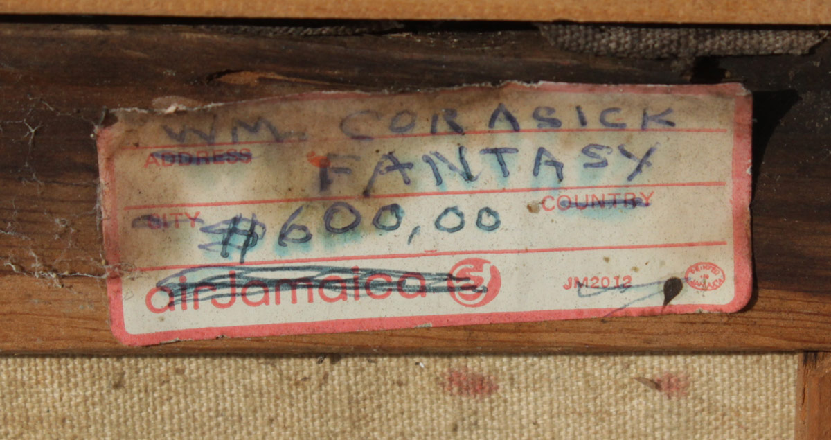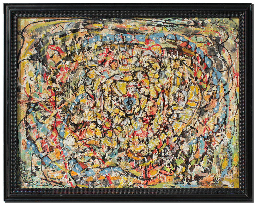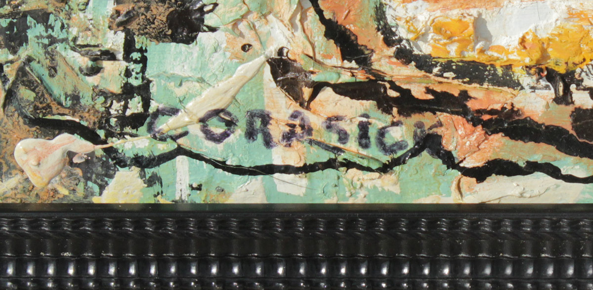 CORASICK, William W.,(American, 1907-2002): ''Fantasy'', Abstract Composition, heavily applied Oil/Canvas with very thick impasto, 34'' x 44'', signed lower right, encased in a black painted frame with wear, 36 1/2'' x 47''.