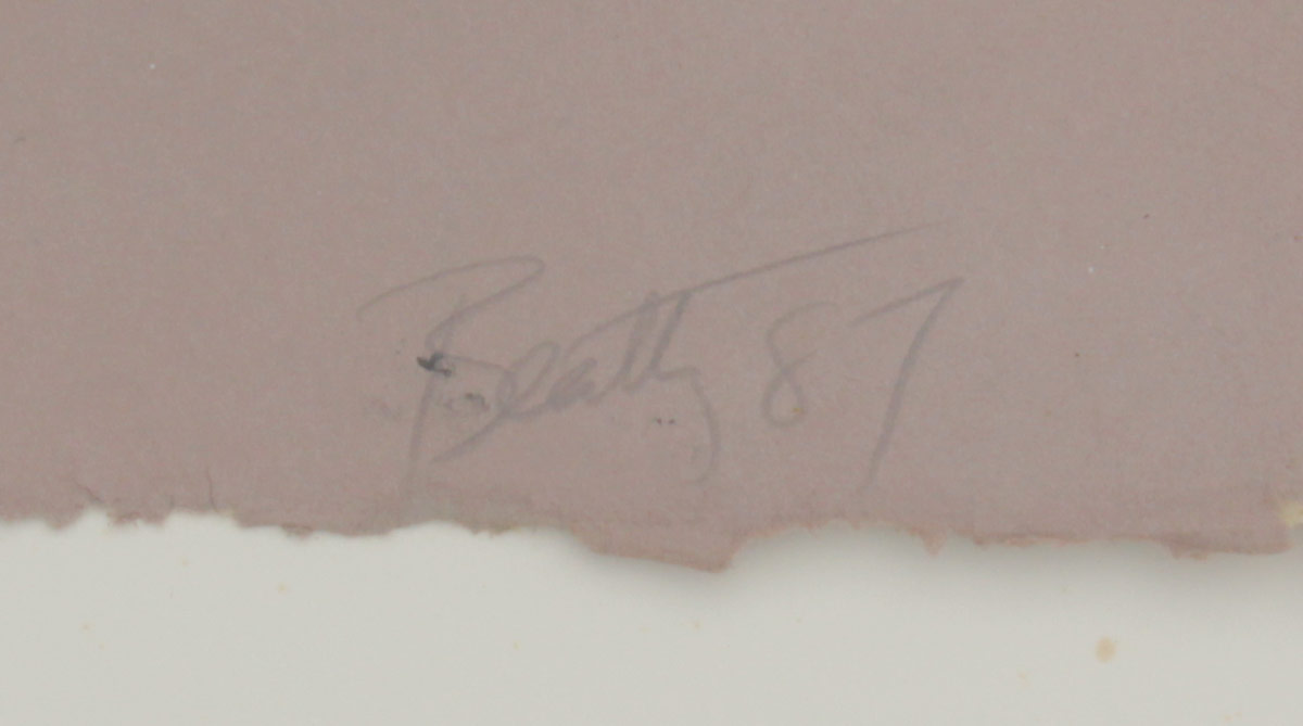 BEATTY, Lois, (American, 20th Century): ''Paperscape #1'', Mixed Media, Handmade Paper/Gouache, Float Mounted, 22 1/2'' x 31'', pencil signed lower right, dated '87, titled lower left, original gallery label affixed verso, encased in Artist's custom wood frame 27 1/4'' x 35''.