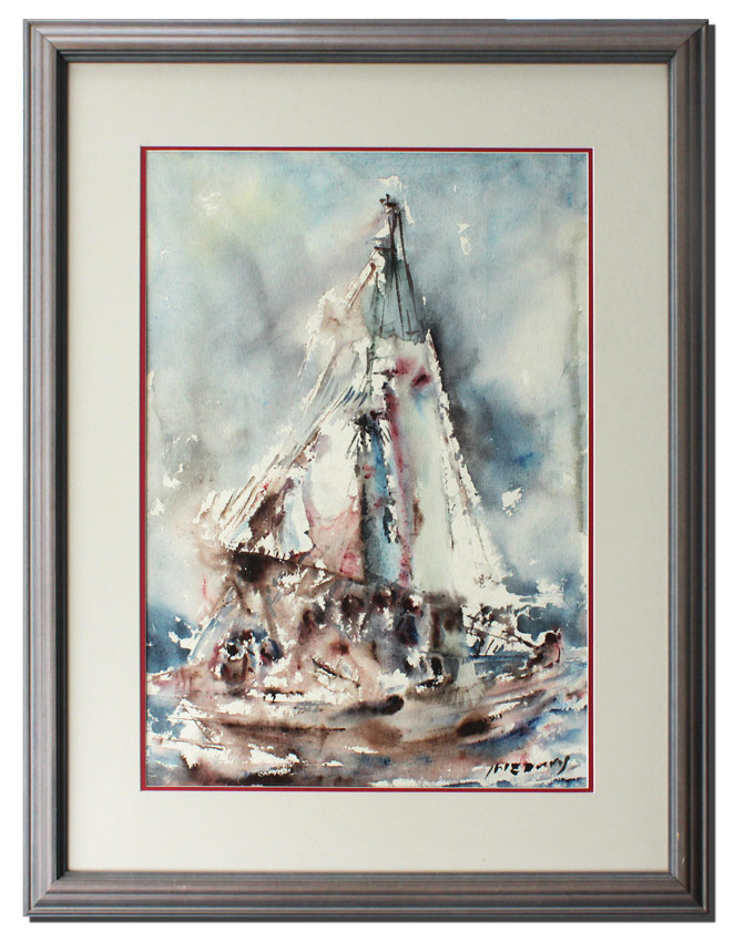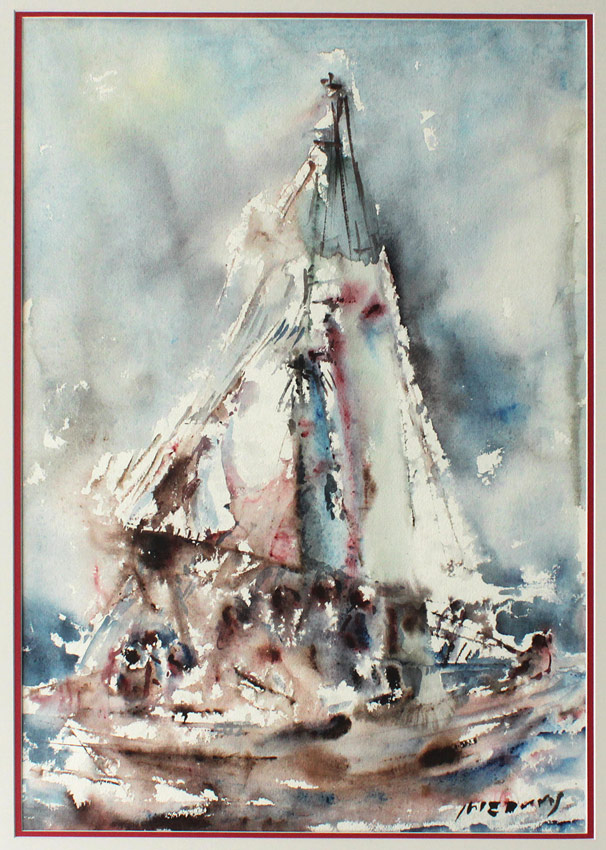 IRIZARRY, Epifanio, (American, 1915-2001): Sailboat, Watercolor, Sight size 21 1/2'' x 22 1/4'', signed lower right, custom professional framing with minor wear, 32'' x 44''.