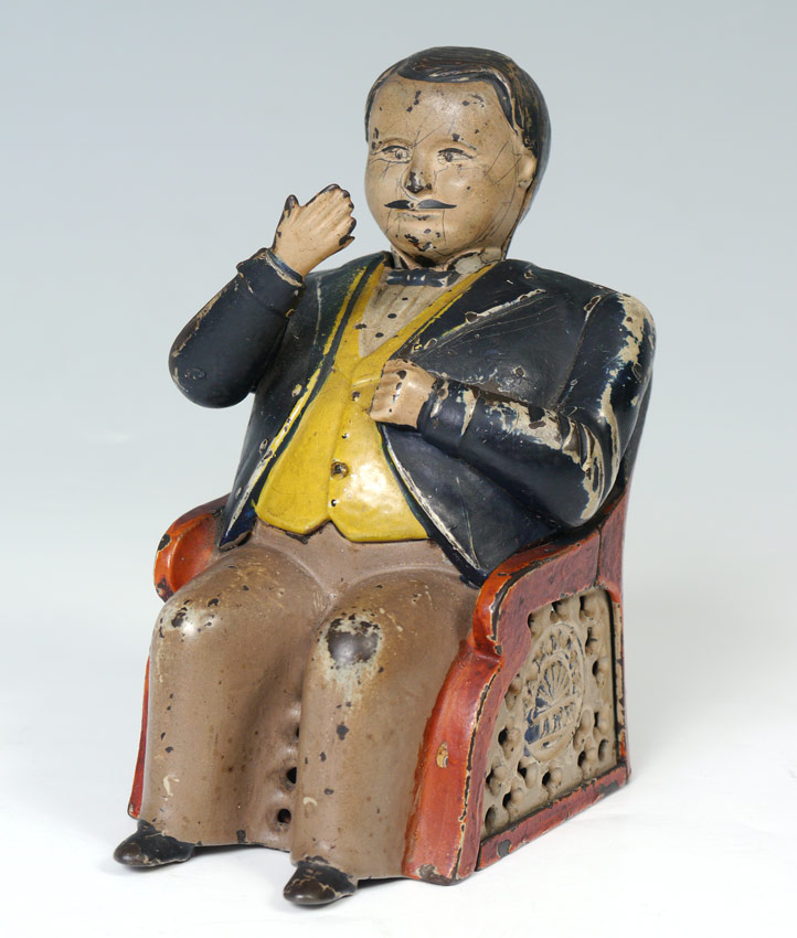 CAST IRON TAMANY MECHANICAL BANK: 1873 patent date on back of chair, 5 3/4'' h. x 3 1/2'' x 4 1/2''.