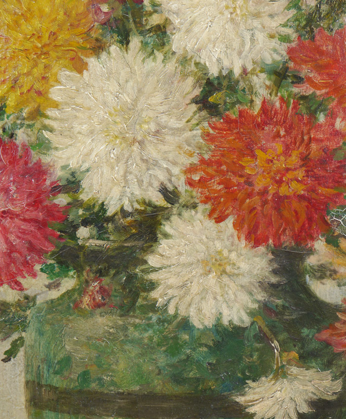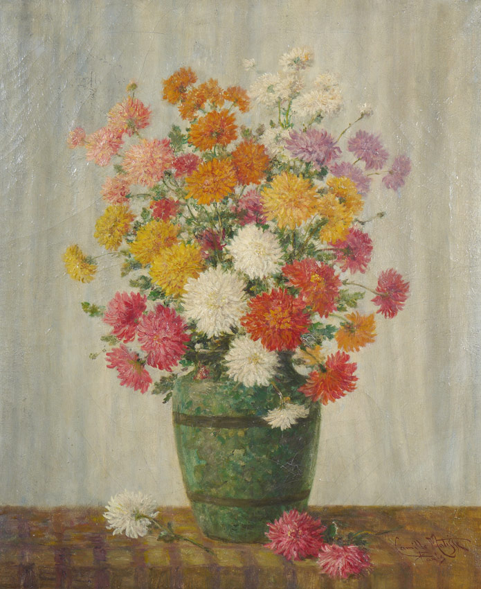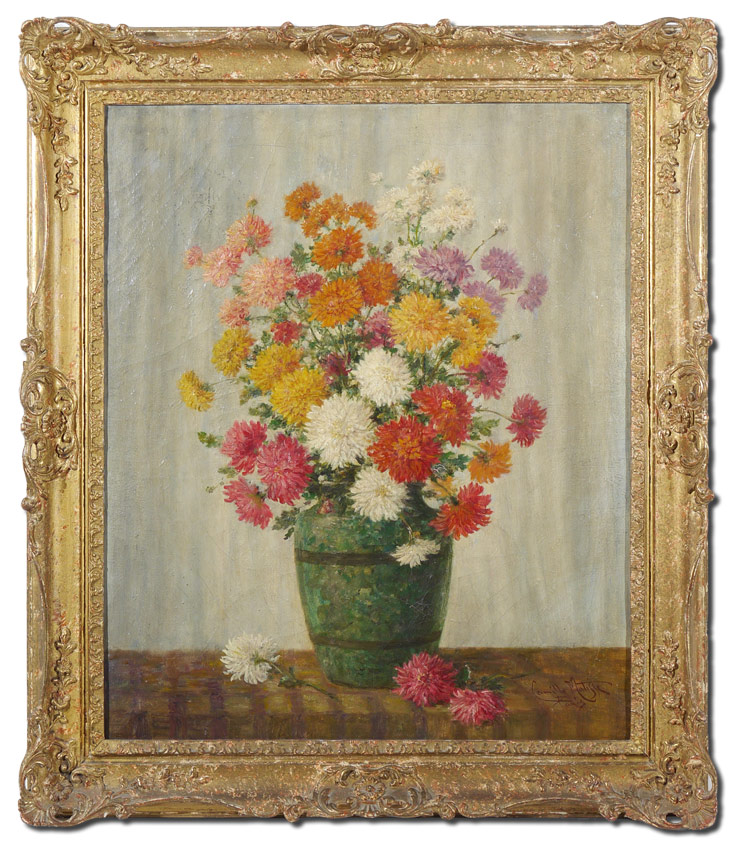 MATISSE, Camille, (French, 20th Century): Still Life Bouquet of Carnations in a Vase, Oil/Canvas, 30'' x 25'', signed lower right, Paris, encased in pierced carved gilded and painted frame with damage, 37 1/4'' x 32''.