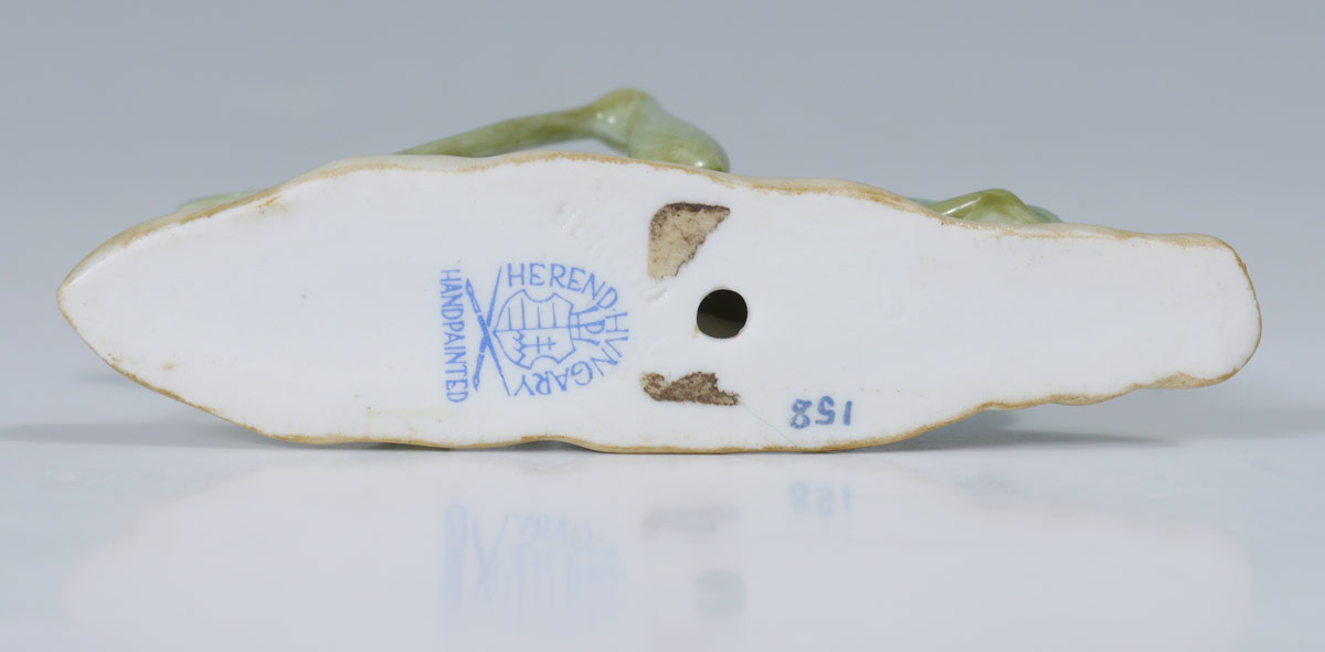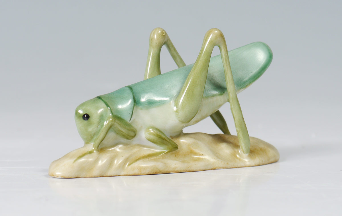 HEREND PORCELAIN GRASSHOPPER: Marked with Herend mark and number 158. 1 1/2'' h. x 3''.