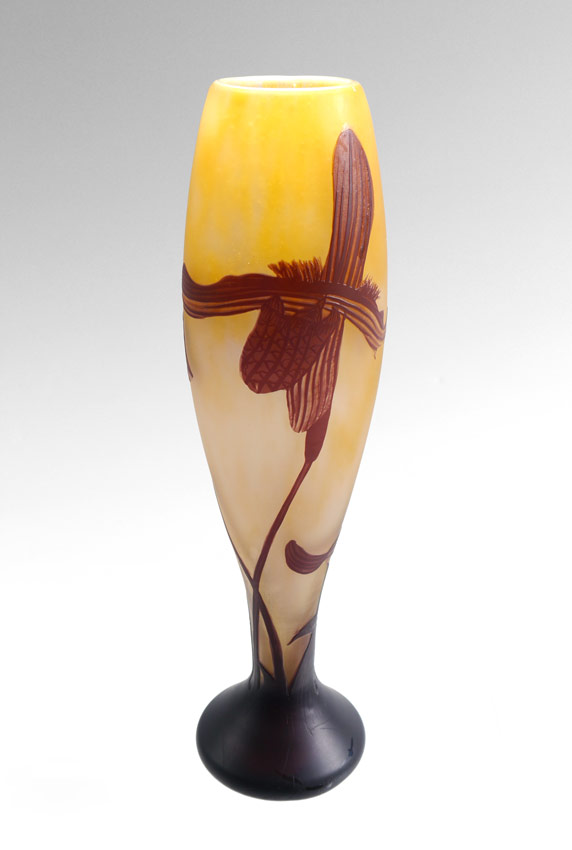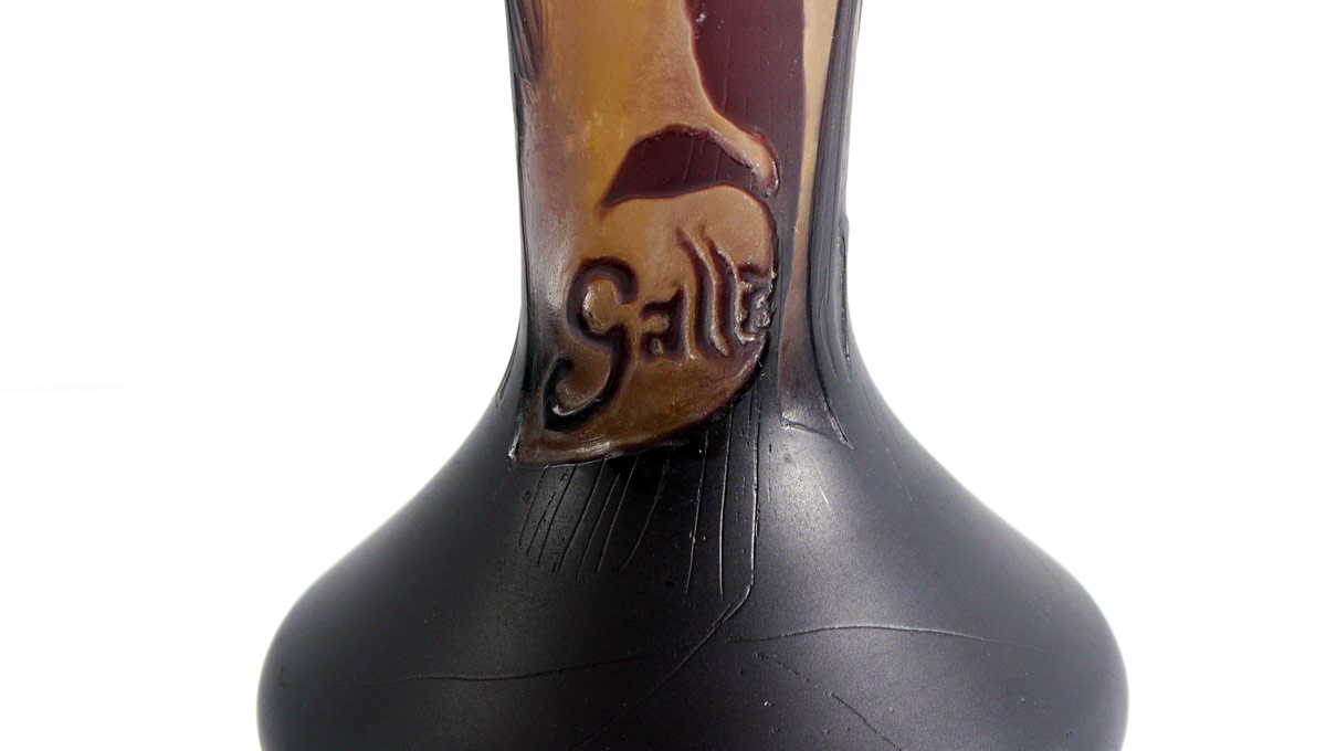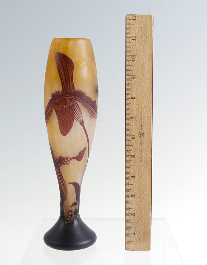 CAMEO GLASS VASE SIGNED GALLE: Cameo cut in a floral design, 11''h.