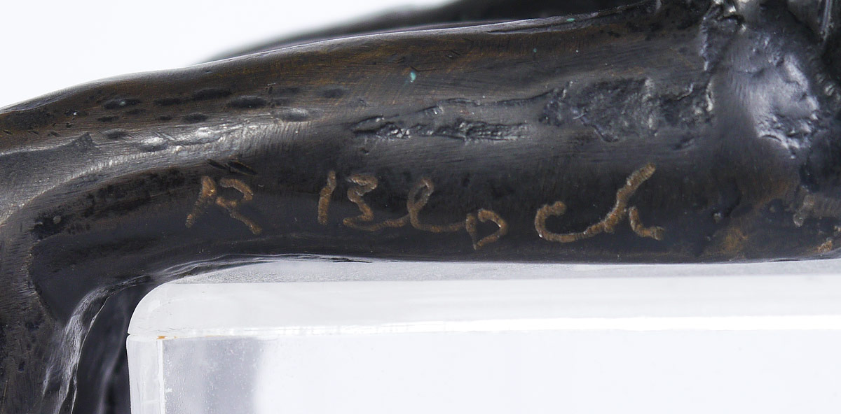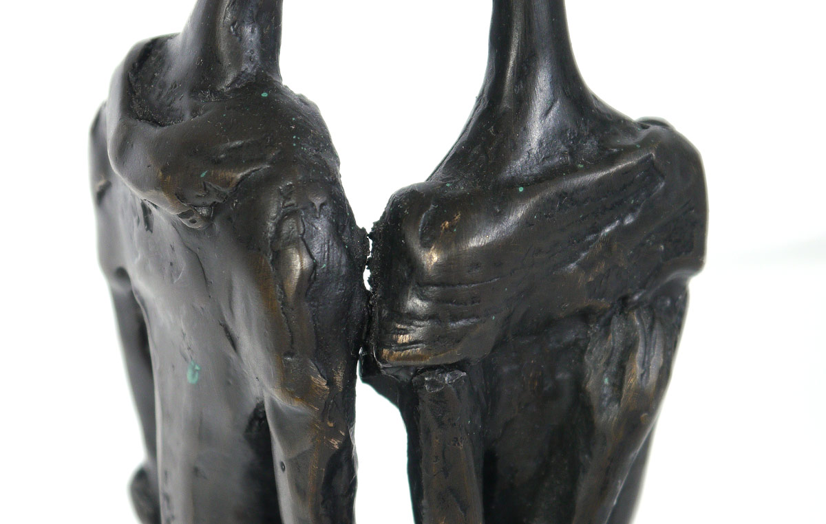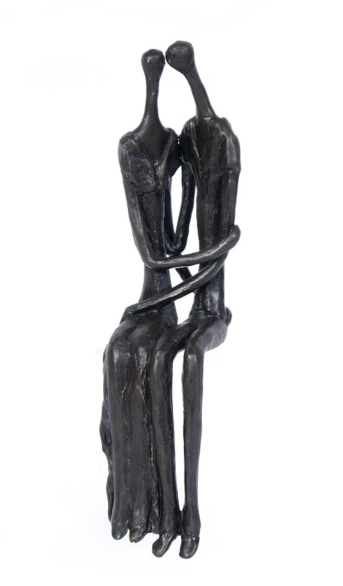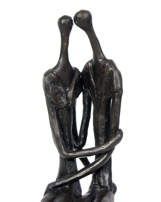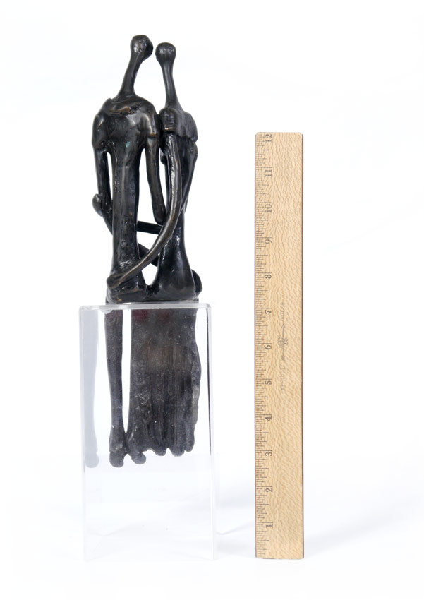 BLOCH, Ruth, (Israel, 1951-): Bronze Seated Couple Signed on Left side Left Leg R. Bloch, with Lucite Block Stand, 13'' h., incised signature.