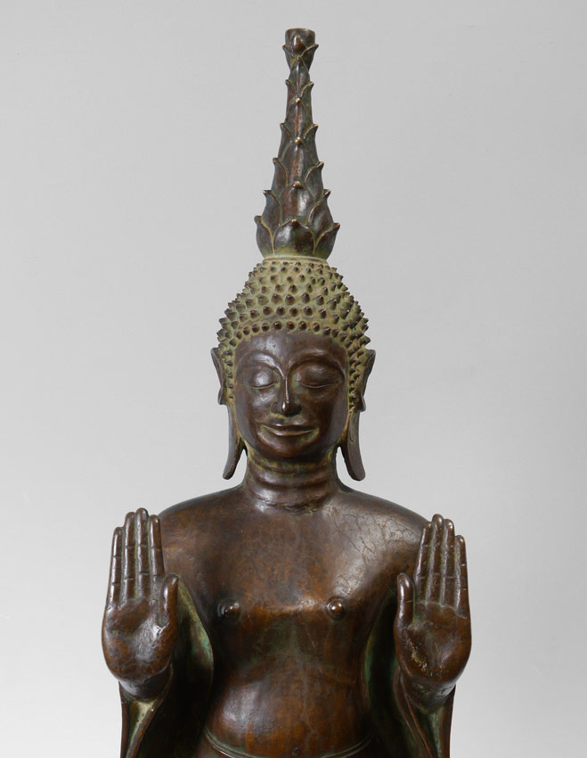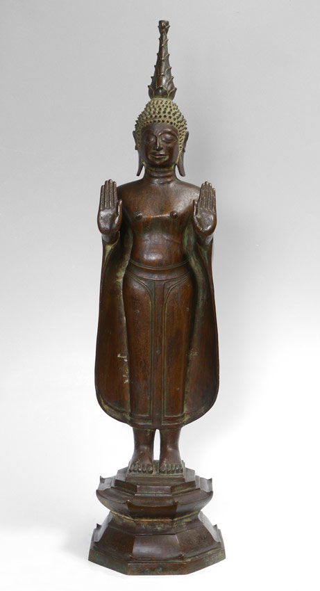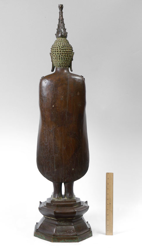 LARGE BUDDHIST BRONZE IDOL: 44'' h., age unknown, appears to have at least 50-75 years of age, 68 lbs.