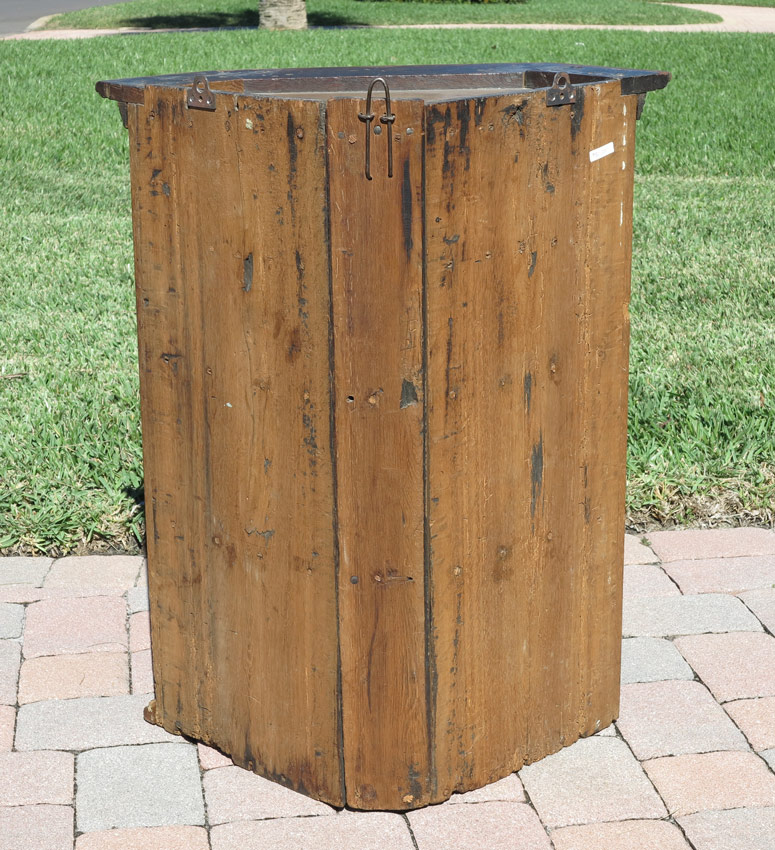 CONDITION: Missing trim to one side at bottom, door is locked with no key. Condition is consistent with age.