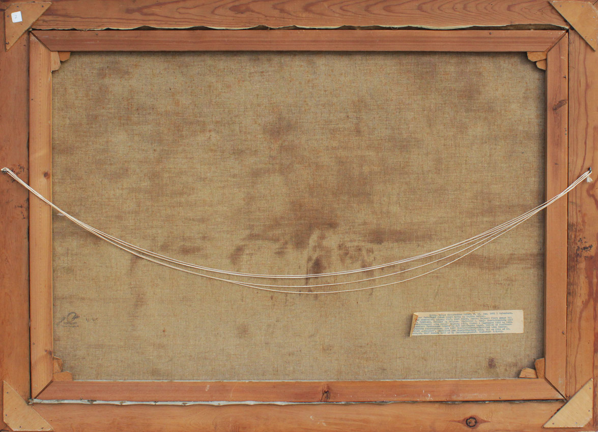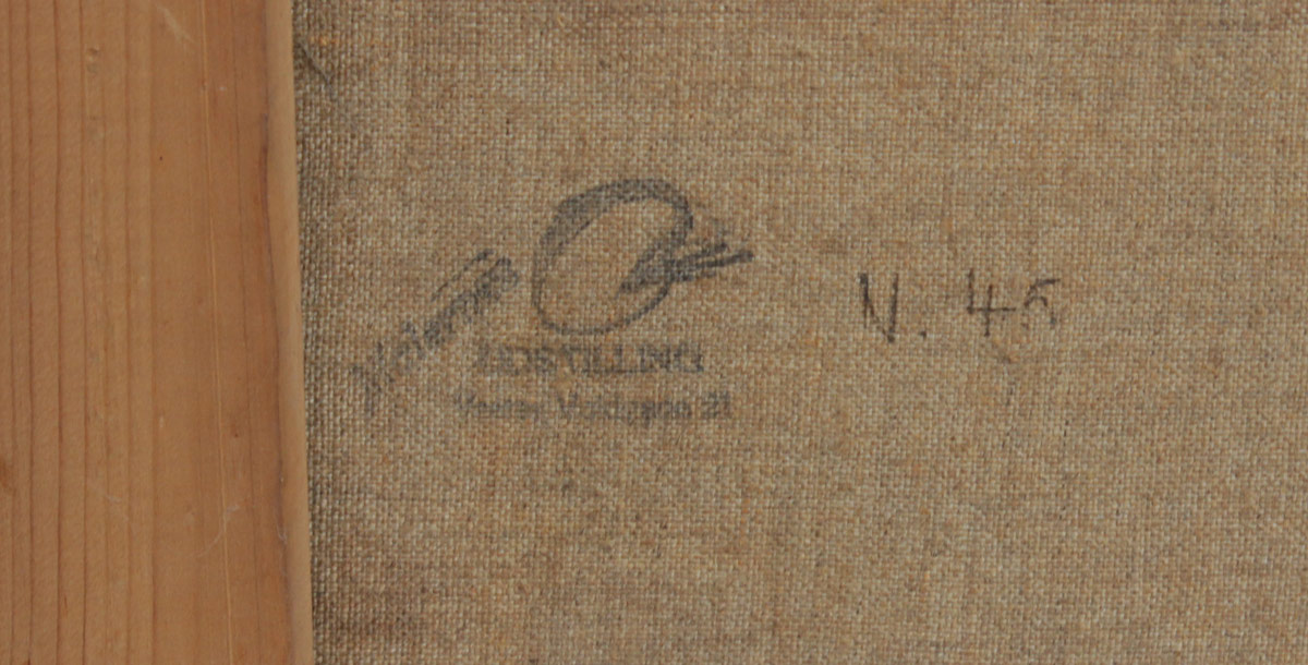 CONDITION: Stretcher bar wear, several minor abrasions, needs cleaning.