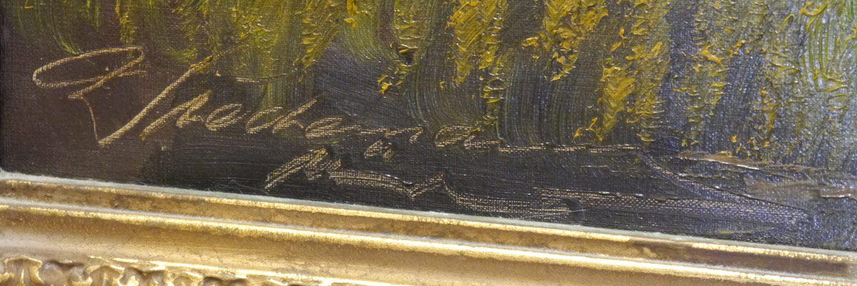 CONDITION: Needs cleaning, several minor flecks of paint loss, small patch lower right corner, good overall.