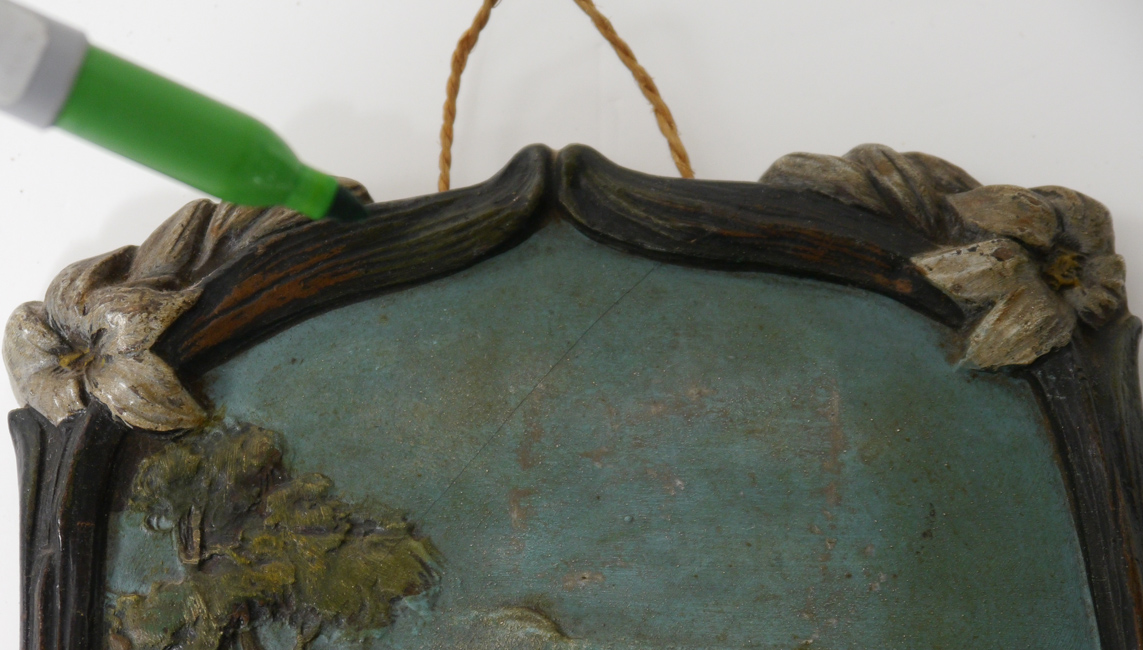 CONDITION: Crack in upper section does not go all the way through, rubs with patina loss on edges.