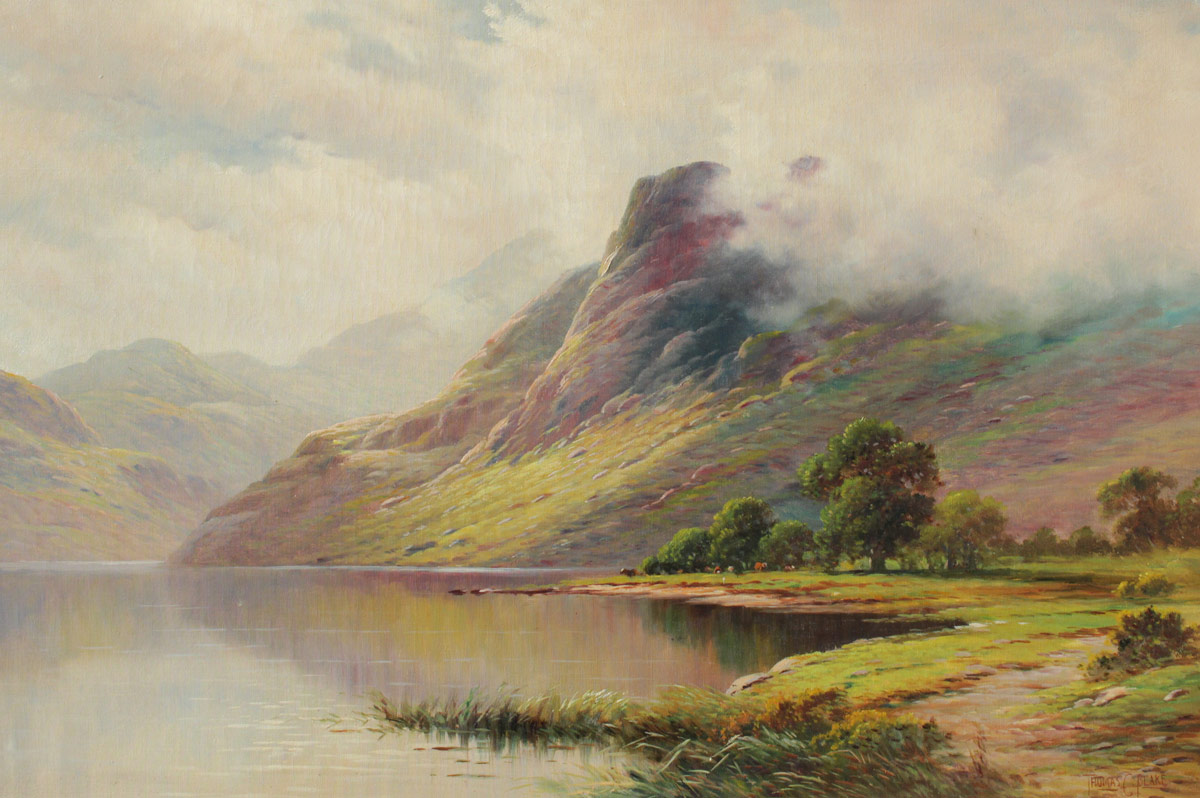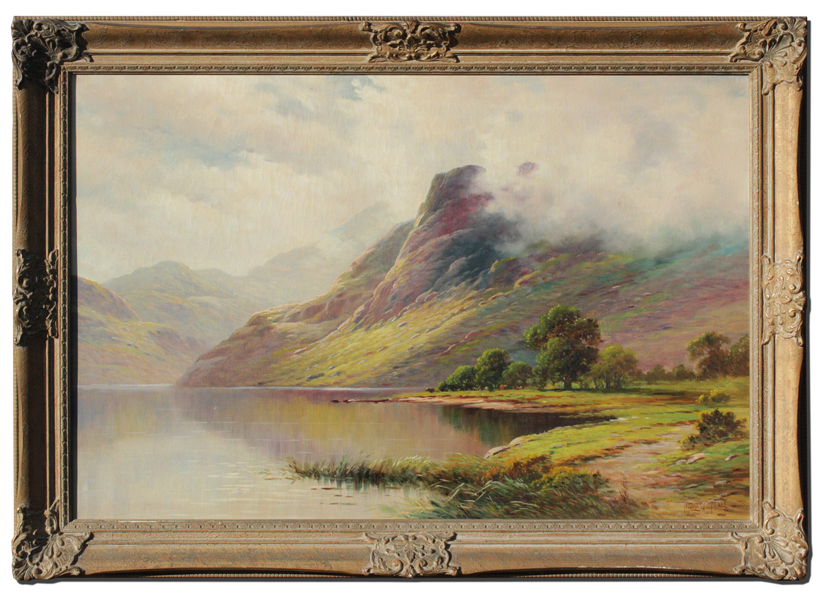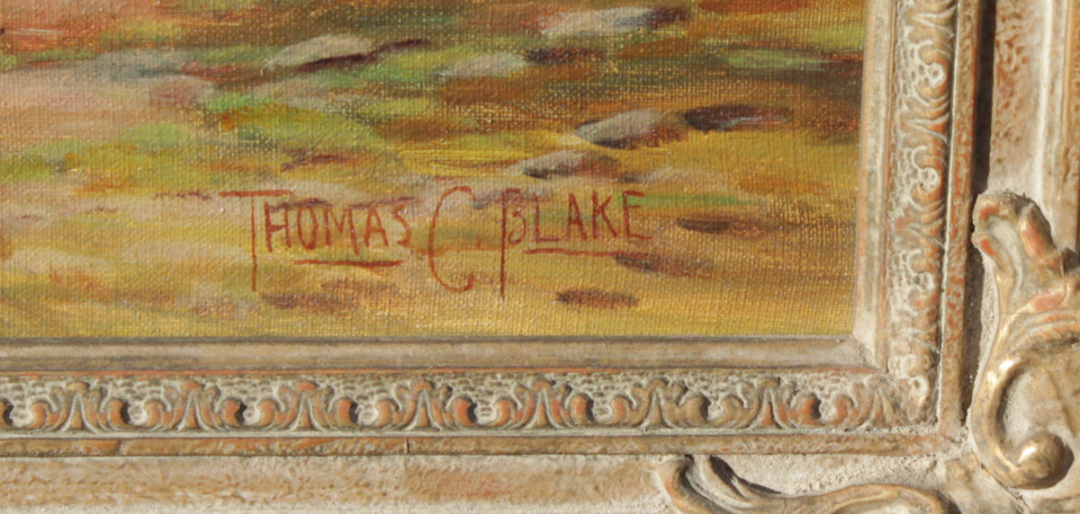 BLAKE, Thomas C., (American, 1890- ): Scottish Highlands Shoreline Scene, Oil/Canvas, 24'' x 36'', signed lower right, encased in period carved and gilded frame with minor wear 29'' x 41 1/2''.