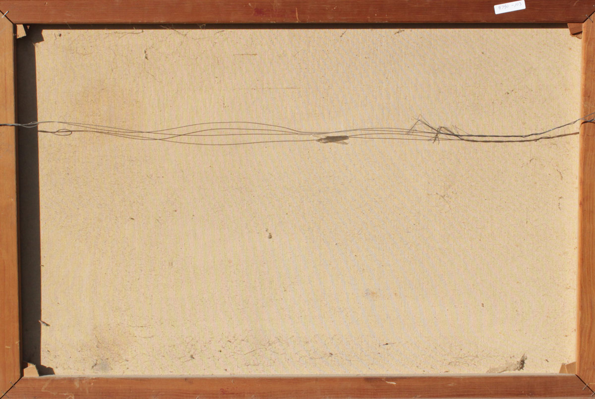 CONDITION: Mild craquelure and stretcher bar wear, several very minor abrasions, needs cleaning.