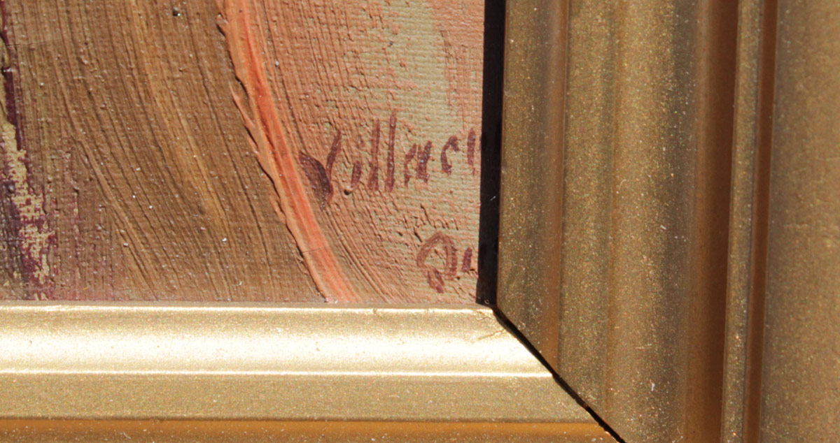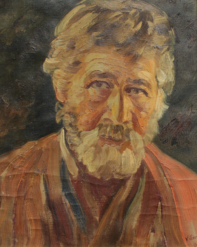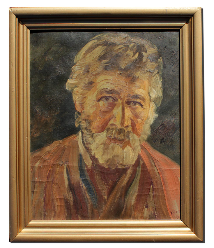 VILLACRES, Cesar A., (Ecuador, 1880-?): Bearded Man (Self Portrait?), Oil/Canvas, 14 1/2'' x 11 3/4'', painted gold frame with wear 17'' x 14'', this has been stretched over a wood panel, signed lower right, Villacres Quito.