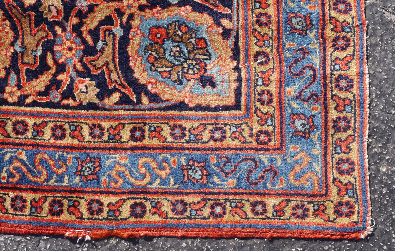 CONDITION: There is a diagonal slit in one corner of the rug that has been professionally repaired. Also the ends have been bound.