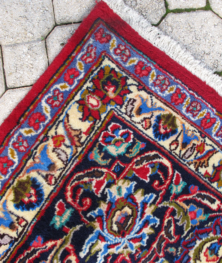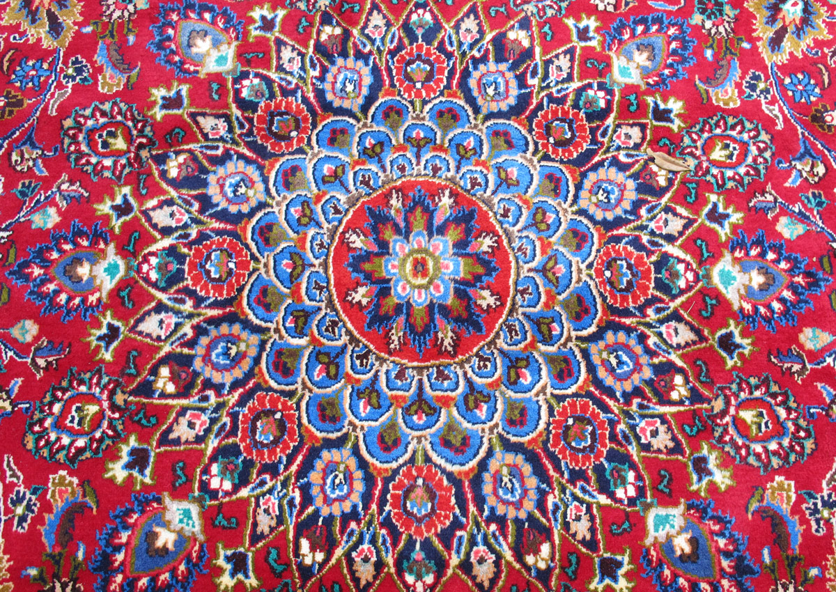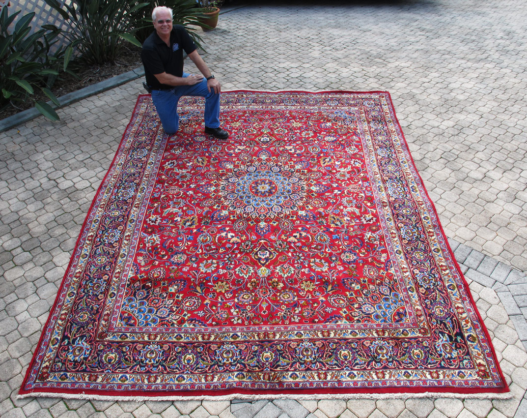 PERSIAN HAND KNOTTED WOOL CARPET, 12'10'' x 9'7'': This attractive rug has a traditional Ardedil pattern with a round medallion whose design radiates out into the red field. The four corners of the field match the center medallion in color and design. Nice clear colors with well drawn pattern.