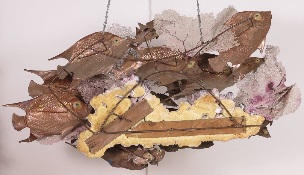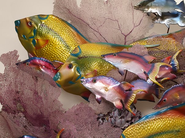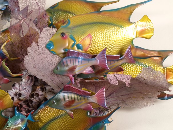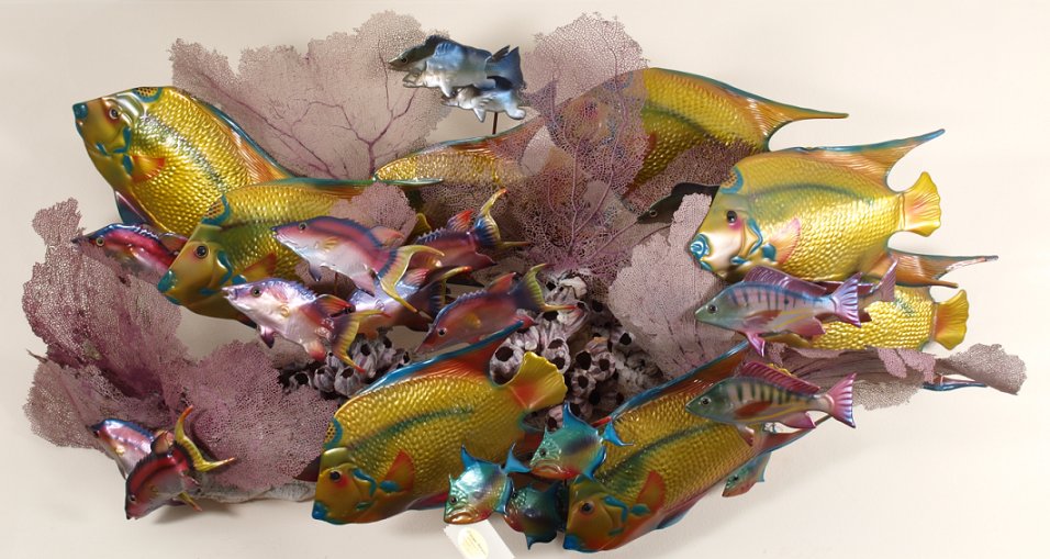 JERE? TROPICAL FISH WALL HANGING: Approx. 29'' h. x 52'' x 14''.