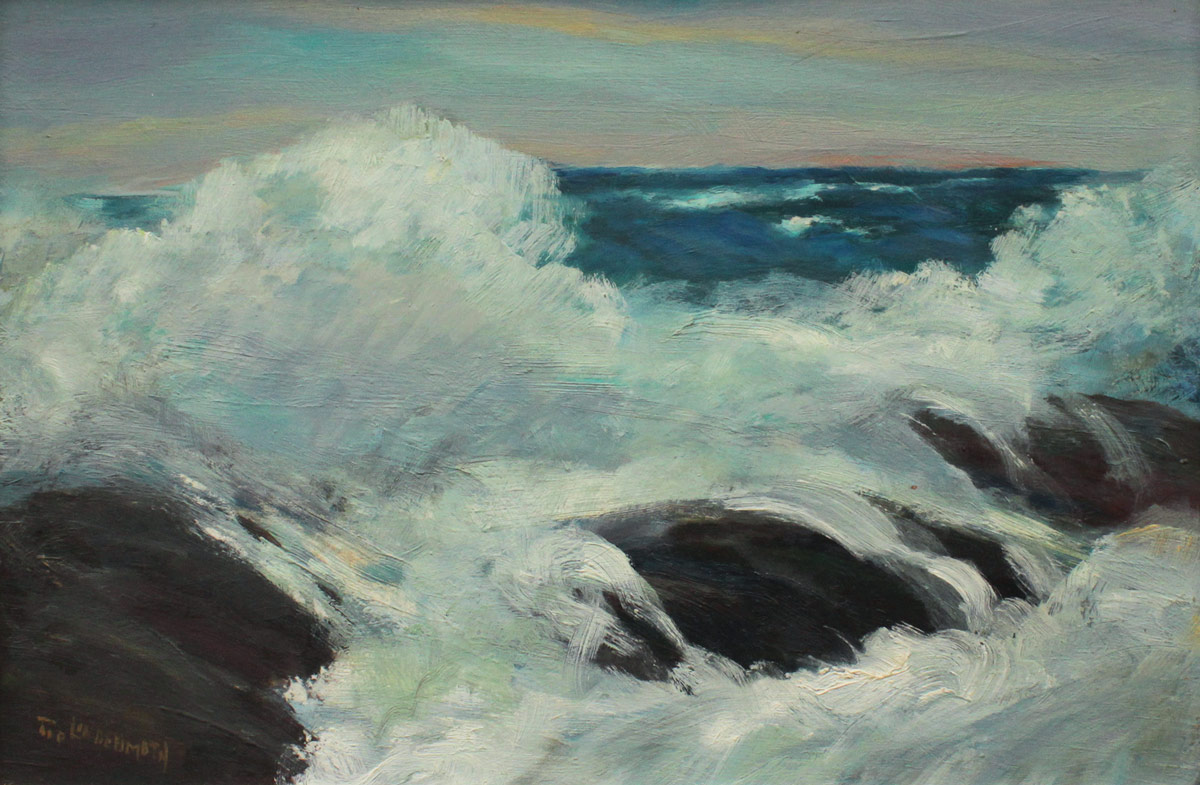 LINDENMUTH, Tod (Raphael Leroy), (American, 1885-1976): Coastal Surf Form, Oil/Masonite, 11 1/4'' x 16'', signed lower left, encased in painted ornate gesso frame, 18 1/2'' x 24''.
