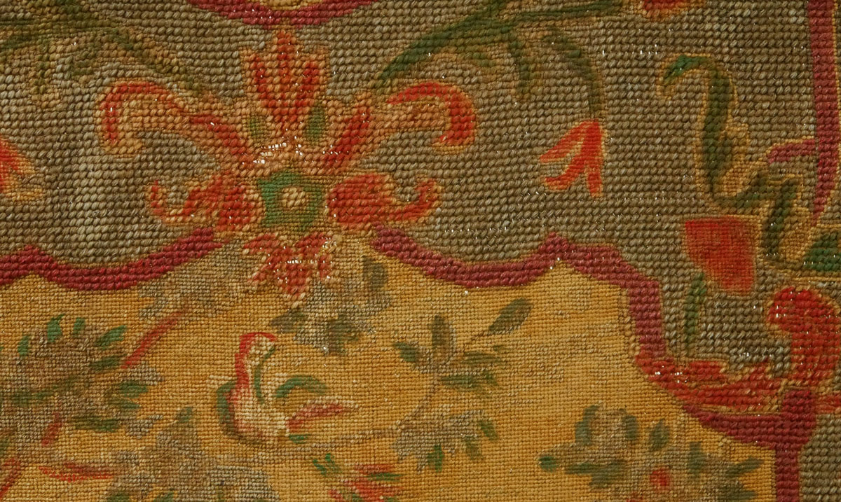CONDITION: Loss of paint decoration, tapestry will require cleaning and repair.