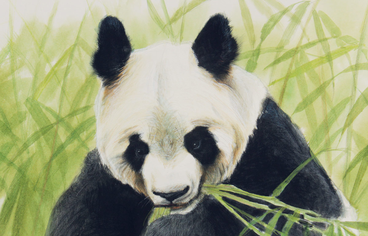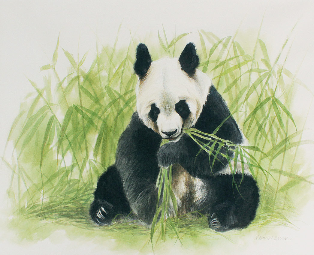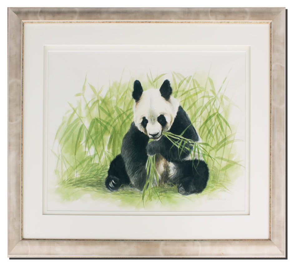 HILLIER, Matthew, (American, 1958- ): Panda Eating Bamboo, Watercolor/Pencil, Sight size 17 1/2'' x 23 3/4'', pencil signed lower right, contemporary frame 28'' x 33 1/2''.